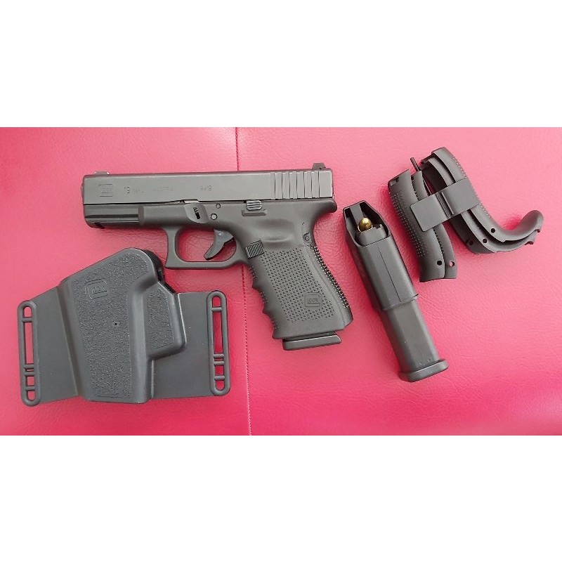 Glock 19 Gen 4 9x19 parabellum / 9mm - 15+1 - 3 şarjör ve fotoğraftaki aksesuarlarla birlikte verilecektir. Her açıdan sorunsuz ve temizdir.Sıfır ayarındadır. Evrakları tamam olan SORUNSUZ kişiler arayabilir.