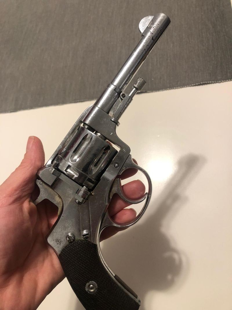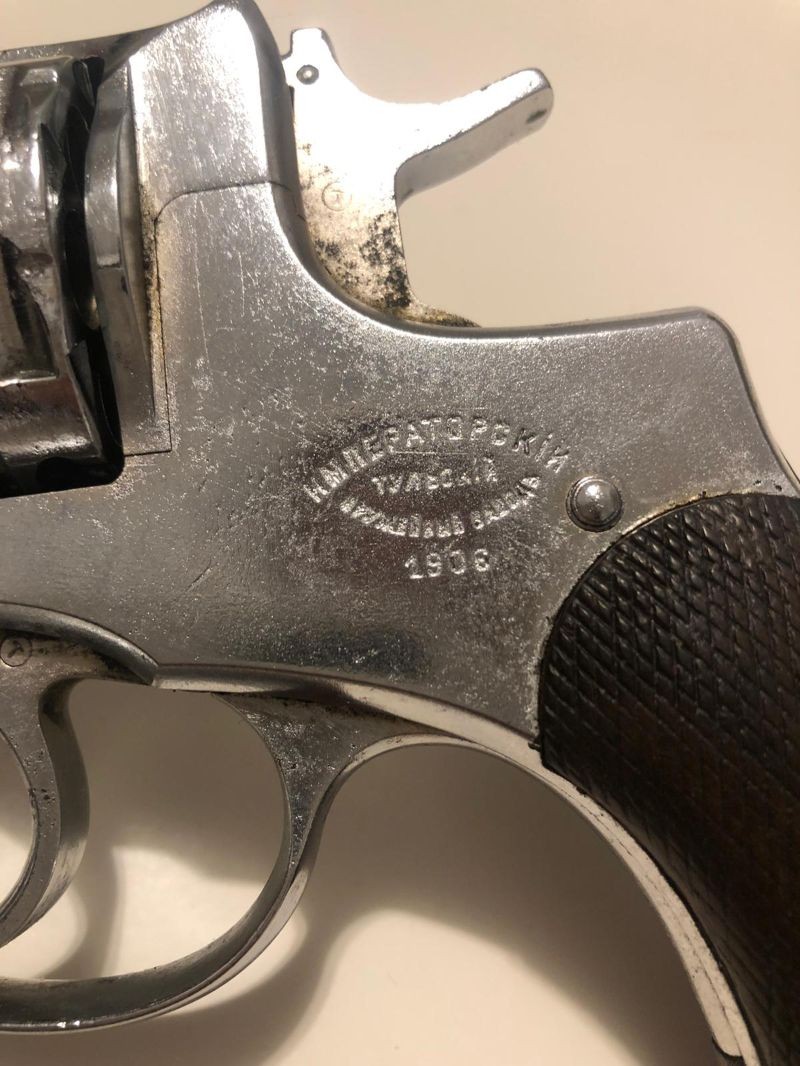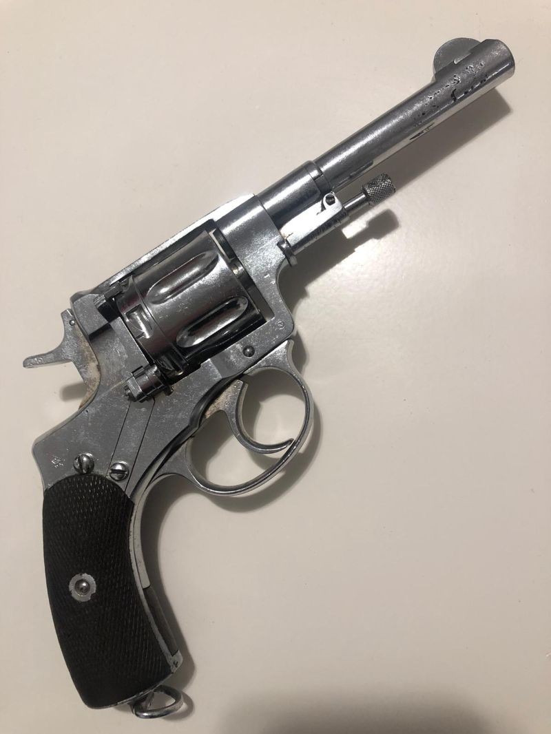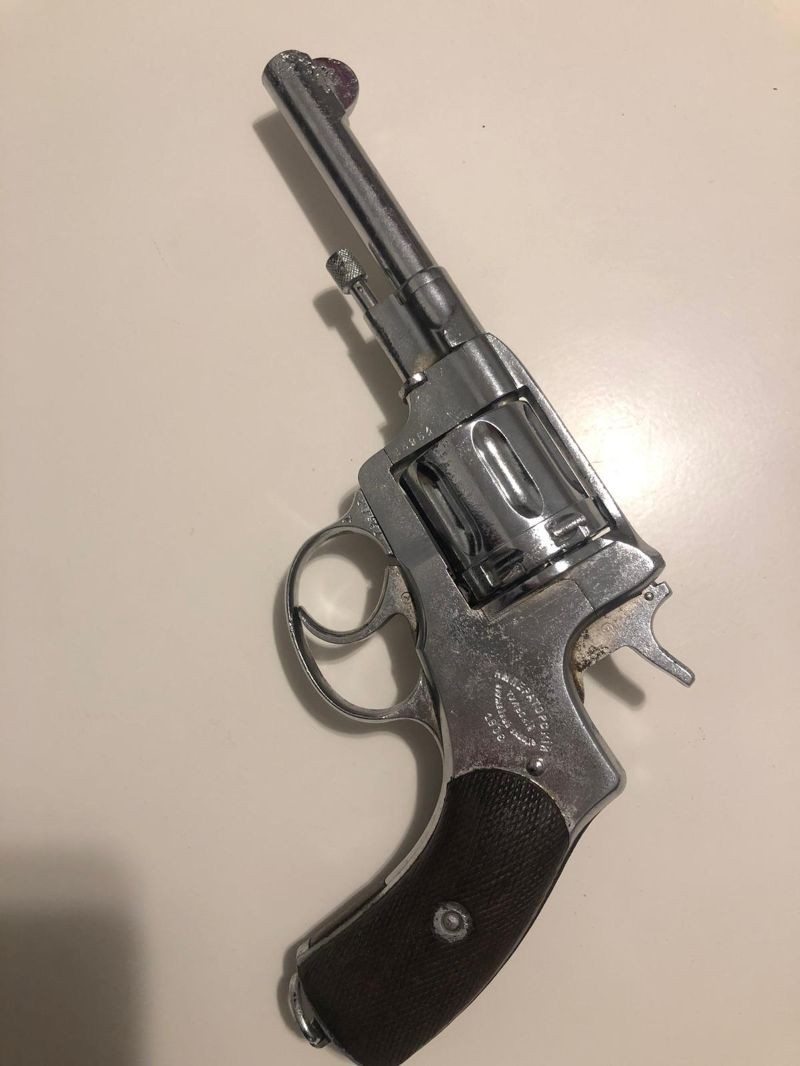 Bulundurma ruhsatlı dede yadigarı antika tabanca. Çalışır durumda çok temiz, 7'li toplu 7.62 Nagant (mermileri de mevcuttur)