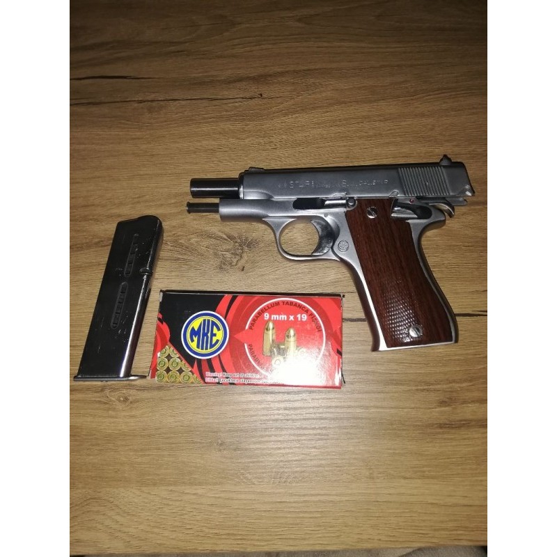 Temiz krom kaplı 9 mm. çapında. Yedek şarjörü ve deri kılıfı mevcuttur