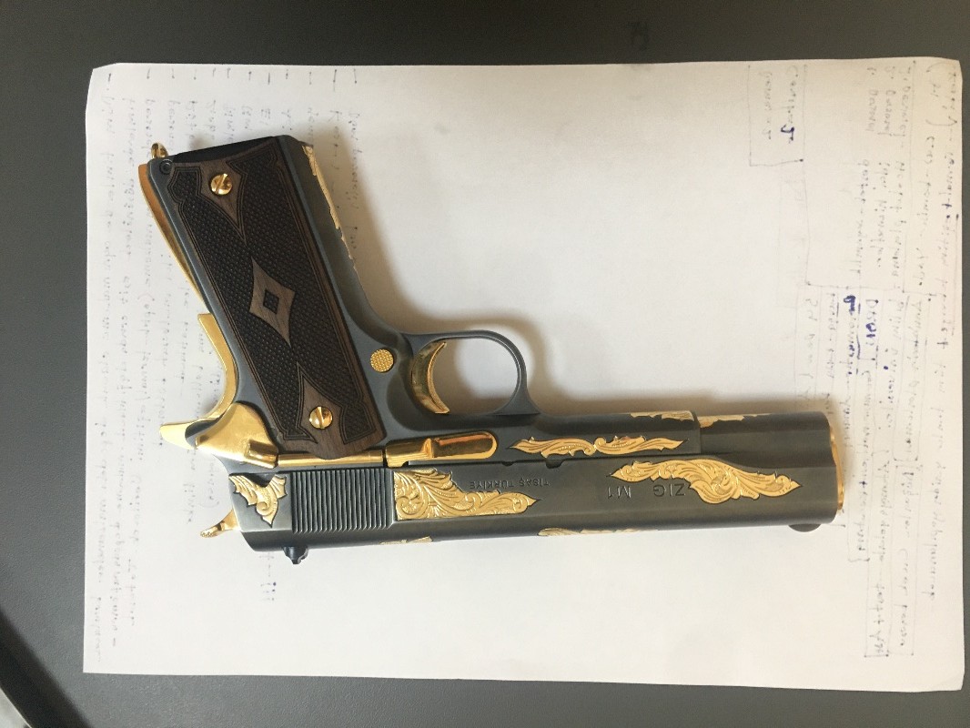 Titanyum altın kablama olan silahımız 9 mm çapında fişek kullanıyor. 1911 colt un Türk versiyonudur. Kabze emniyeti , horoz emniyeti , ve normal emniyeti vardır. Delme gücü normal tabancalara göre oldukça yüksektir. Denenme amaçlı 2 şarjör atılmıştır sadece whatsaptan dönüş sağlanacaktır