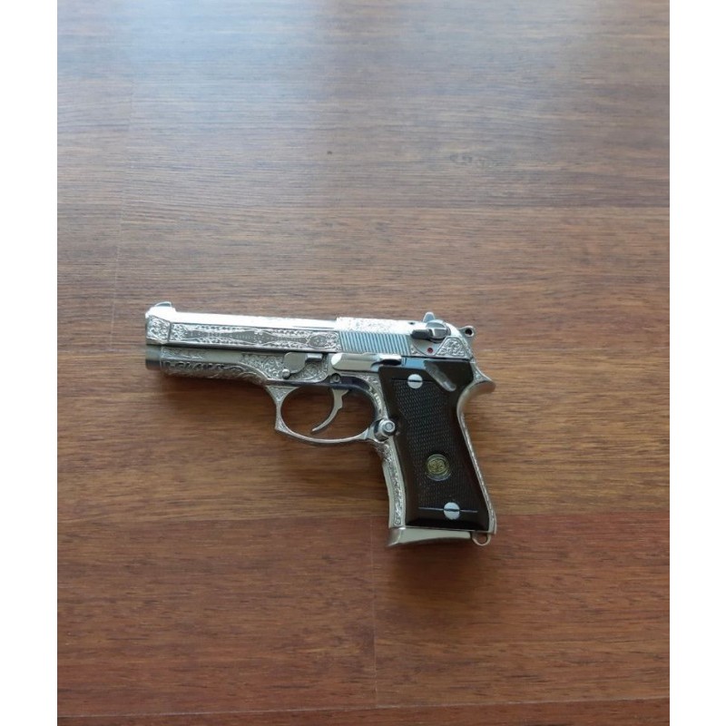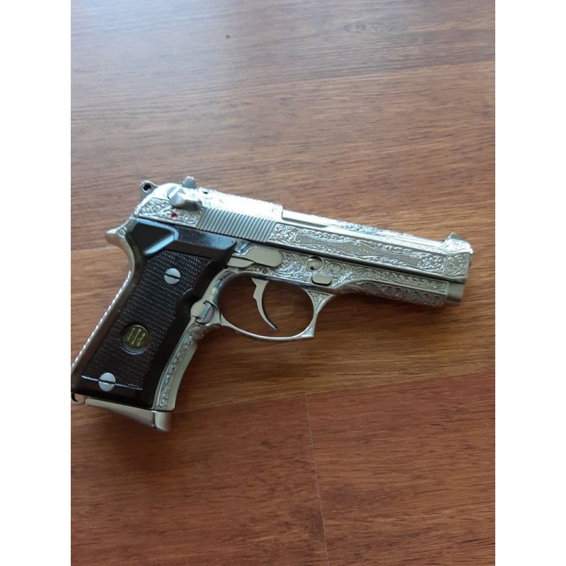Beretta 92 FS 92FS 9mm Gravür Gümüş Kaplama baretta silahımı satmaktayım toplam 200 el ateş edilmemiştir. Çap : 9×19 mm. İlk Hız : 370 m/sn. Fişek Kapasitesi : 15+1 Adet. Yiv Set Adedi : 6 Adet ( Sağa Döner ) Etkili Mesafesi: 50 mt. Namlu Uzunluğu : 125 mm. Ağırlığı : 960 gr ( boş olarak )