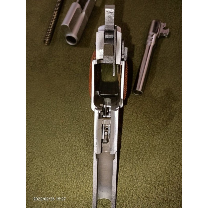 Temiz kullanılmış yıpranmamış kilitleri sağlam sert krom kaplı şarjör emniyeti sökülmüş alan isterse takarım parçası duruyor 5 adet şarjör+çeşitli kılıflar+2 kabze kapağı(üstündeki özeldir) ile 245PM modeli BULUNDURMA RUHSATLI bu yüzden çok atış yapmadı.