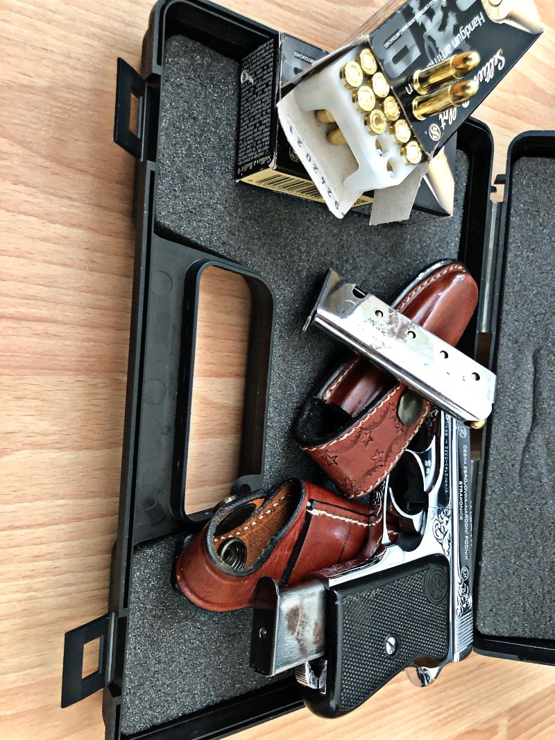 Temiz işlemeli CZ marka mini cep tabancası kılıf 2 şarjör 90 mermisiyle beraber kutusunda