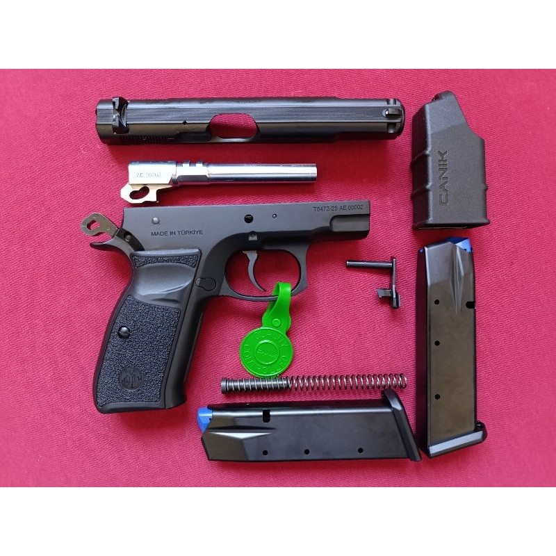 EMEKLİ EMNİYET GÖREVLİSİNDEN RUHSATLI SIFIR KUTUSUNDA HİÇ ATIŞ YAPILMAYAN BİREBİR CZ 75 B KLONU ÖMÜR BOYU CANİK FİRMASI GARANTİSİYLE 2025 MODEL SİYAH KROM CANİK S 120.( 2 ADET 17+1 ŞARJÖR VE DİĞER MALZEMELERİ İLE BERABER.)MKE FİYATI 38.000 TL.OLAN 33.000 TL.