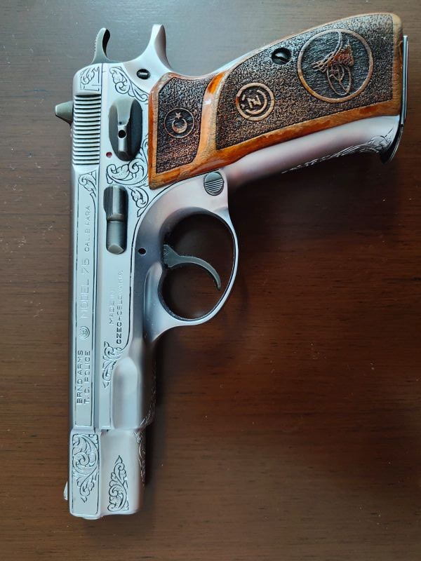 Emekli Emniyet Mensubundan 88 Model sıfır alınmış CZ 75 Model A 15+1 (9x19 mm) Emniyete verilmiş ilk seriden olup çeliğin kalitesi ve sesi diğer modellerden farklı olup çok özel bir tabancadır. (MADE IN CZECHOSLOVAKIA) Boya ve gravür işlemleri Düzce de rahmetli ustaların ustası Mehmet KARSLIOĞLU tarafından yapılmıştır. Detaylı bilgi için 0(507) 792 24 87 iletişime geçebilirsiniz.