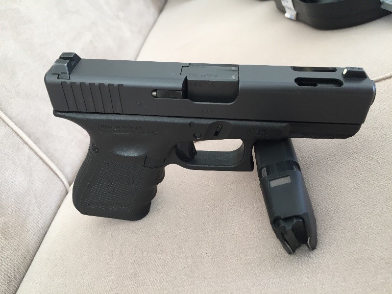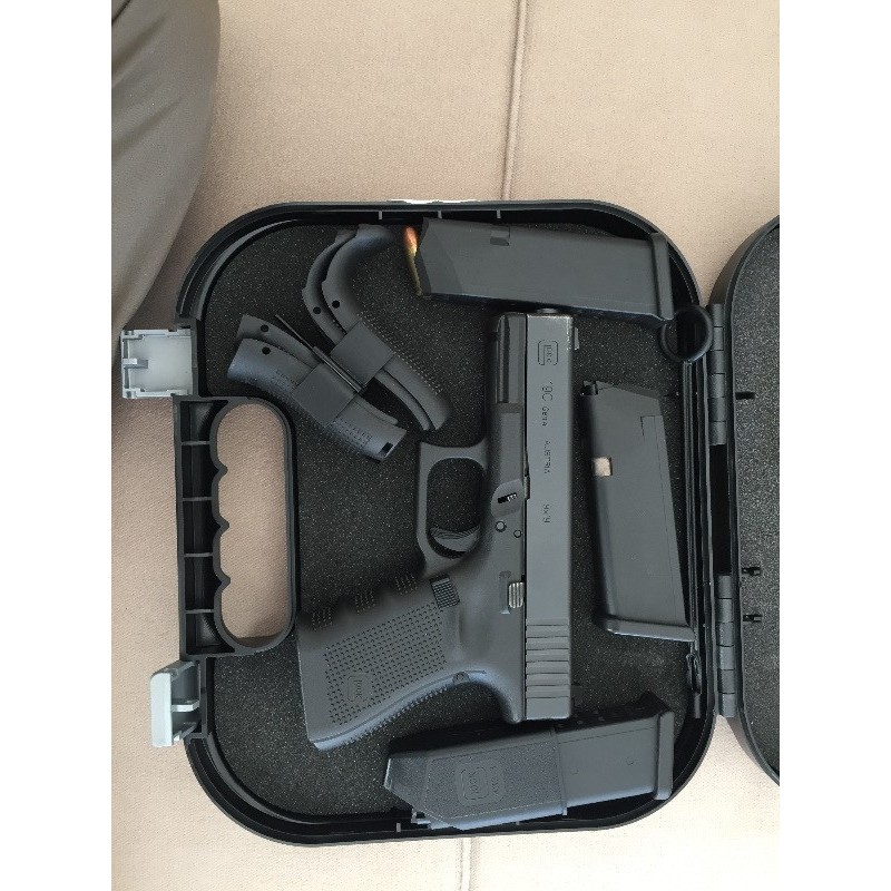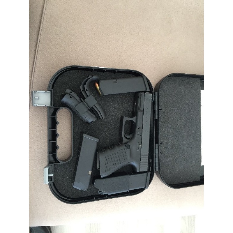 Son derece kompact ve muadillerine kıyasla en az ısınma ile en iyi seviyede kontrollü atış yapmayı sağlayan Glock 19 C modelidir. Özellikle bir tambur şarjörü tek seferde yakıp, gövdenin halen optimal sıcaklıkta olması bunu kanıtlar. Sadece bu yönüyle dahi tam bir ar-ge & mühendislik çalışmasıdır. Kutusu yedek şarjörü,kabza aparatları, hızlı mermi doldurma aparatı,harbi ve fırçası, 3 adet şarjörü sivil silah kılıfı ve İsrail marka polimer imi marka kılıfı, kullanma kılavuzu mevcut olup, TAŞIMA YADA BULUNDURMA RUHSATI ALMAK İSTEYENLERE YASAL İZİNLERİNİ ALMAK ŞARTIYLA DEVİR/SATIŞ YAPILIR. SİLAH NOTER DEVRİNDE TESLİM EDİLİR. ( PAZARLIK PAYI VARDIR )