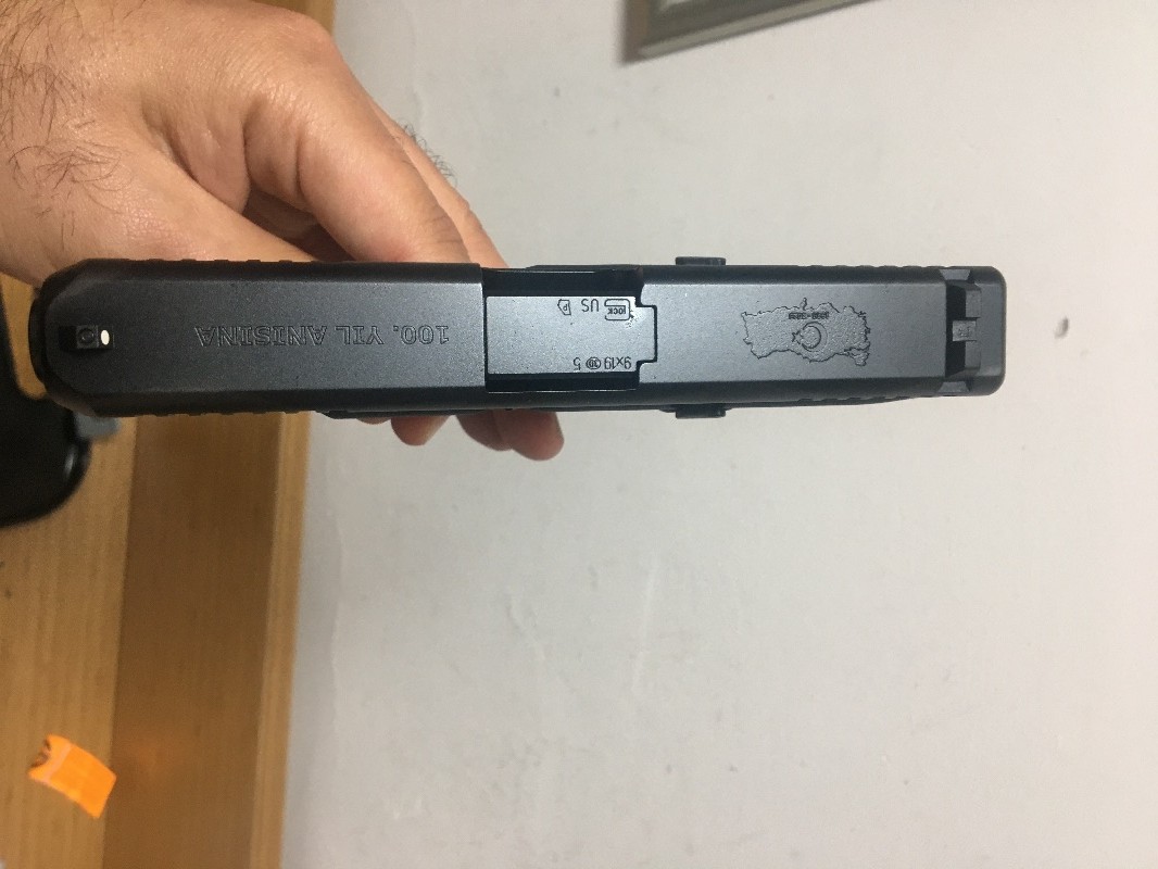 GLOCKUN 100. YIL ANISINA ÜRETTİĞİ TC SERİ NUMARALI TÜRK BAYRAKLI HARİTA GRAVÜR İŞLEMELİ GLOCK 19 GEN 5 SIFIR SÜRGÜSÜ DAHİ ÇEKİLMEMİŞ MKE DEN YENİ ALINDI EVRAKI HAZIR OLANLAR ARARSA SEVİNİRİM