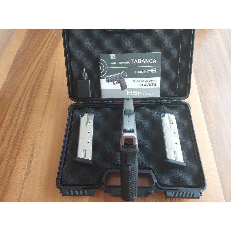 İhtiyaçtan dolayı piyasaya göre oldukça uygun fiyatlı, Sıfır, fabrikadan çıktığı gibi orijinal kutusunda, etiketi dahi üzerindedir. HS-9, “Hırvat Glock’u” olarak da bilinen Hırvatistan yapımı bir tabanca modelidir. • Yüksek kaliteli çelik malzeme ve polimer gövdesi ile dayanıklı bir yapıya sahiptir ve zorlu koşullarda bile güvenilir bir performans sunar. • Çift eylem/tamamlayıcı özelliğine sahip bir tetik mekanizması vardır. • Namlusu, yüksek doğruluk sağlayan özel bir tasarıma sahiptir. • Özel tasarlanmış nişangâh sistemi, hızlı ve etkili hedef almayı kolaylaştırır. • Geri tepme kontrolü sağlayan gelişmiş mekanizması (Low Recoil), atış konforunu artırır ve ardışık atışlarda dahi sarsmayan bir atış deneyimi sunar. • Ayrıca, kaymayı önleyen kavrama yüzeyleri ve ergonomik tasarımı ile kullanım kolaylığı sağlar. Yüksek performansı, güvenlik özellikleri, dayanıklılığı ve ergonomik tasarımı ile öne çıkan HS-9, hem güvenlik güçleri hem de bireysel kullanıcılar tarafından tercih edilmektedir. Amerikan Polisinin de kullandığı bu tabanca Amerika’da “taşınabilir compact silahlar” dalında ödül almıştır. Lütfen belgeleri hazır olanlar arasın. Alıcısına şimdiden hayırlı olsun… NOT: Aşağıdaki linkten HS-9 ile Glock-19’un karşılaştırmasının yapıldığı videoya ulaşabilir ve HS-9’un üstün özelliklerini görebilirsiniz. https://www.tabancatufek.com.tr/showthread.php?tid=25