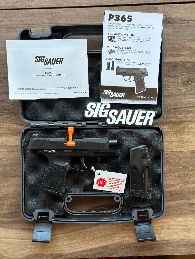 Dünyanın en küçük Micro Compact tabancası. (Emsalleri Glock 26 ve 43 den çok daha küçük ve ince) (148 mm 28 mm 109 mm ölçülerinde) 9*19 mm mühimmat kullanır. 2 adet 10 fişek kapasiteli şarjörü vardır. Permi ile ABD den ithal olarak getirildi. Ufak bir pazarlık payı olabilir. Diğer P365 lerden farklı olarak çift taraflı emniyet vardır. Lütfen Ruhsat evrakları hazır alıcılar arasın.