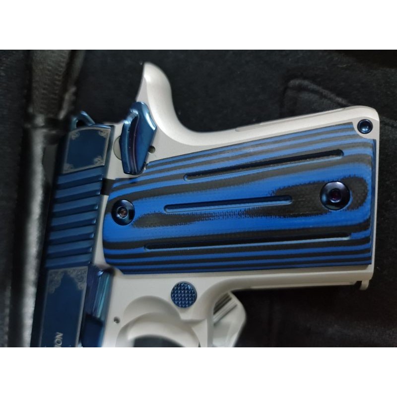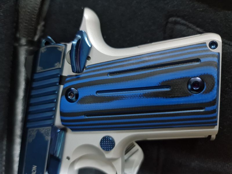 Yurtdışından yeni getirilmiş SIFIR 9mm silah. Kompakt yapıda ve estetiktir. Sürgüsü mavi titanyum kaplamadır. Ekstra 2 adet şarjörü ile birlikte verilecektir. --- ÖZELLİKLER Yükseklik (inç) namluya 90°: 10.33 cm Boş şarjörlü ağırlık (ons): 442.23 gram Uzunluk (inç): 15.5 cm Şarjör kapasitesi: 6 Tam uzunlukta kılavuz çubuk Çok yönlü başparmak güvenliği --- Çerçevesi saten gümüş kaplama Küçük parçalarda parlak mavi PVD kaplama --- WhatsApp üzerinden ulaşabilirsiniz. Takaslar değerlendirilir.