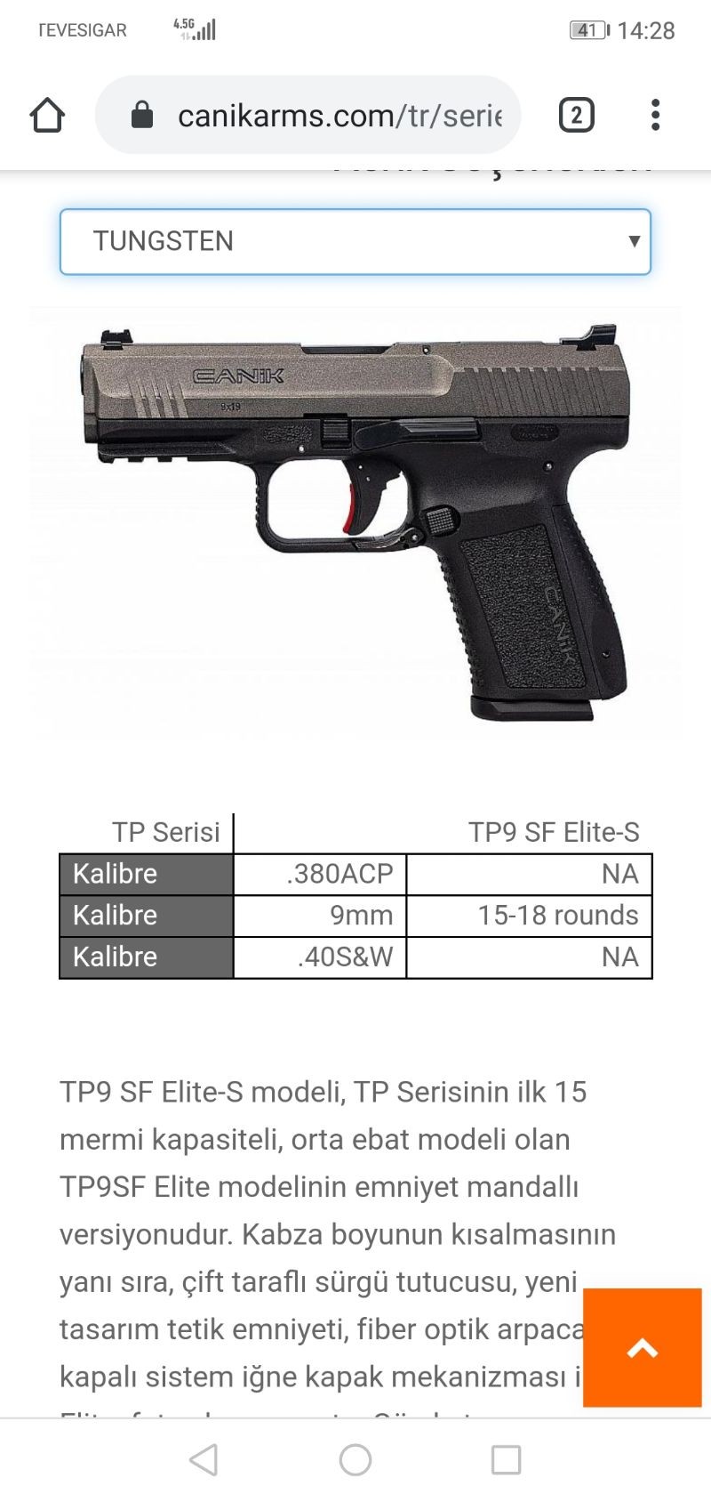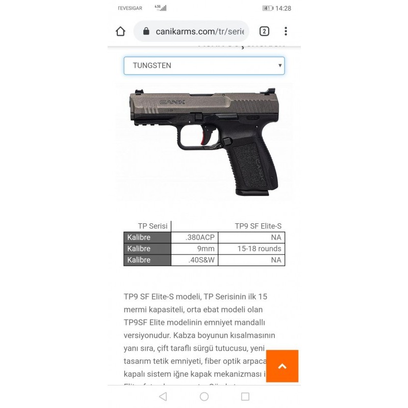 Kutusu açılmış, hiç kullanılmamıştır silah. Canik tp 9 ELİTE S Tungsten modelidir. MKE satış fiyatı 4300 liradır.