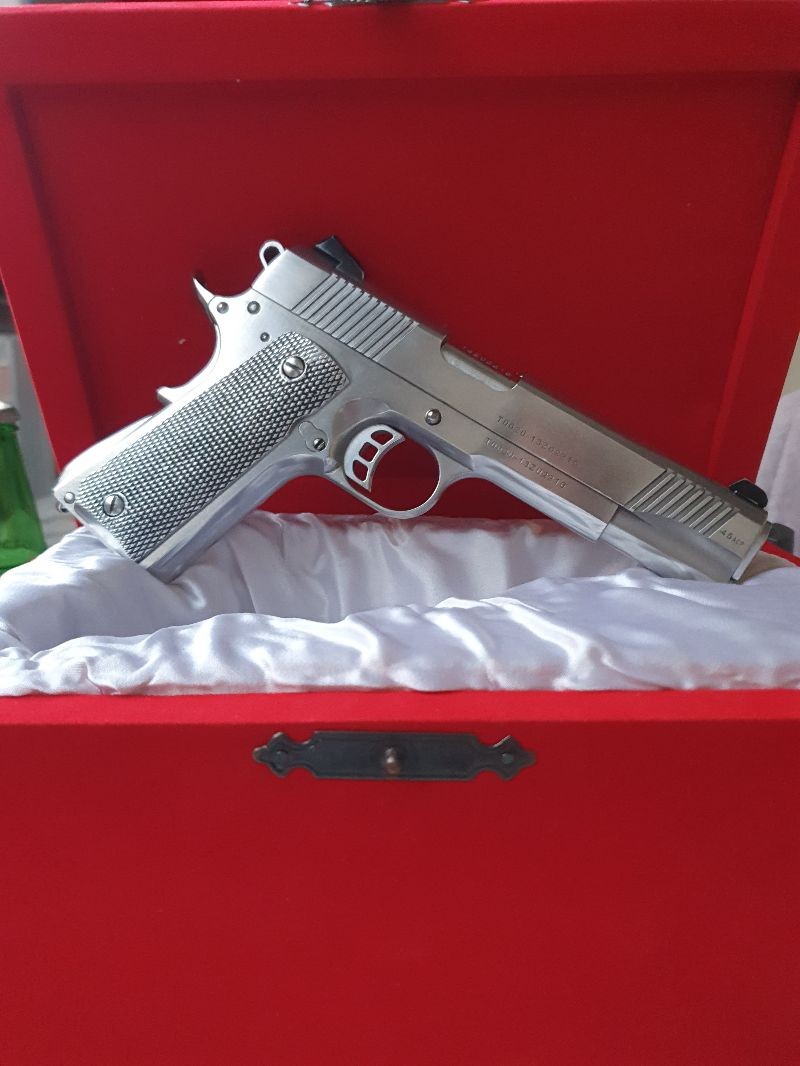 Tüm parçarı orj.colt olarak değişimi yapılmış olup 3 farklı modelde kullanılabilir 7 +1, 45 acp 11,43 mm mühimmata sahip Hiçbir sorunu olmayıp özenle muhafaza edilmiştir. (Parçalar Orj.Colt olup maliyeti bellidir yanında verilecektir) 2 adet şarjör. -colt 2adet kahve renkte / 2adet siyah / ,1adet gümüş kabza. 2takım olmak üzere siyah ve krom. horoz ,icra yayı ve mili,yay takozu , yüksük,tetik yan ve körük emn, iğne ,tırnak, vs vs.full yanında verilecektir.