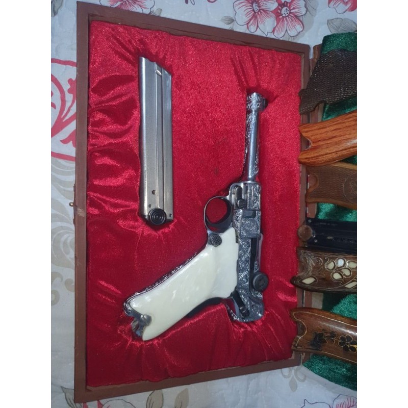 Makina ruhsatlı işi bilmeyen uğraşmasın muayer istediğiniz kadar deneyip atilabilirsiniz gümüş işlemeli yedek şarjör ve kabzası mevcut kutusu kadife 9mm orjinal makine acil olduğu için bu fiyat