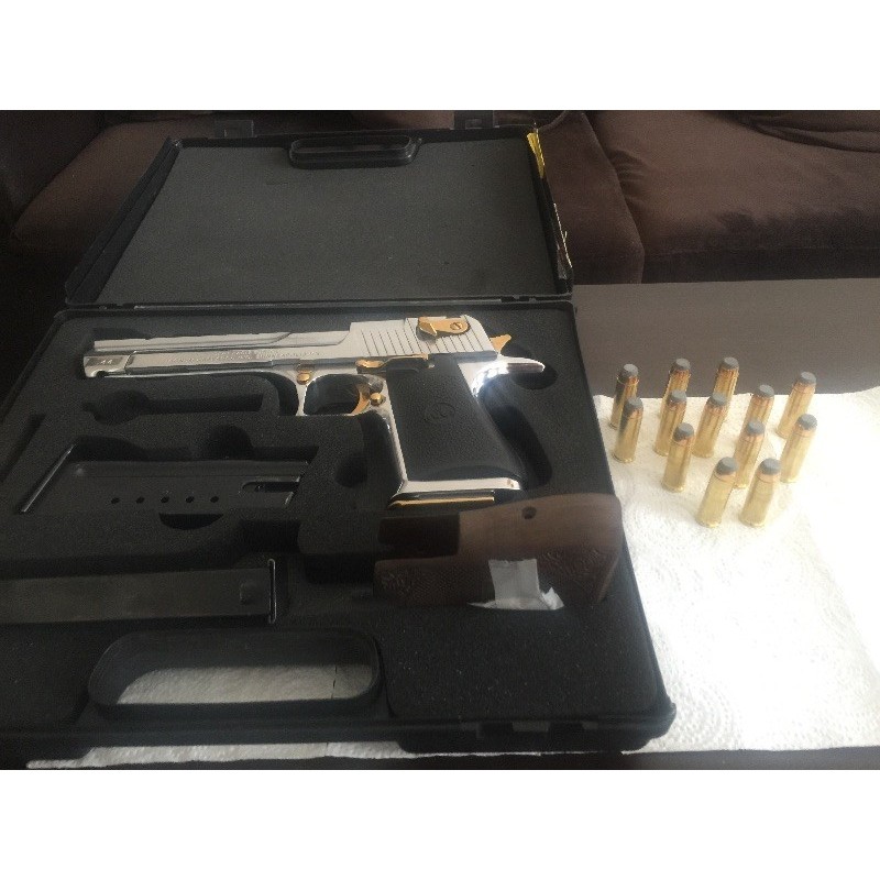Özel yapım resimdeki parçalar altın kaplama 3 adet şarjörü ile kutusunda 44 kalbre magnum mermisi atar 8+1 jarjör kapasiteli