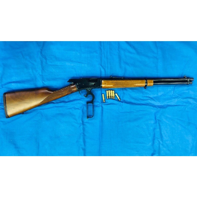 Amerika’n yapımı olup marlin marka 357 mağnum tabanca mermisi atma özelliğine sahip 9+1 kapasiteli hafif kullanımı kolay taşıması kolay lever action yani alttan kurma kolu yardımı ile çalışan kovboy tüfeklerini andıran görüntüsü ile mükemmel üstü yivli tüfek Ny silah garantisi ile satışta mağazamızda görmek isteyen müşterileri bekleriz