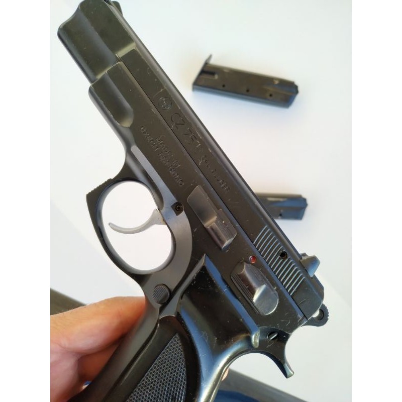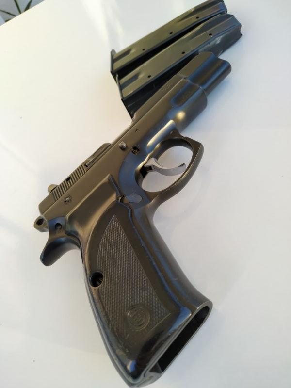 İlk hızı : 370m/sn. Ağırlık : 1.12 kg. Üretici: Ceska Zbrojovka. Kullandığı Mühimmat: 9x19mm Fişek kapasitesi : 15+1adet. Fişek çapı : 9×19 mm. Yiv set adedi : 6 sağa döner. 95 model olup bugüne kadar polis teşkilatına verilen en iyi silahlardan olup asla tutukluk yapmaz,2 adet orjinal şarjörü vardır.Dosya ve devir işlemlerinde yardımcı olunur. TAŞIMA YADA BULUNDURMA RUHSATI ALMAK İSTEYENLERE YASAL İZİNLERİNİ ALMAK ŞARTIYLA DEVİR/SATIŞ YAPILIR. SİLAH NOTER DEVRİNDE TESLİM EDİLİR.