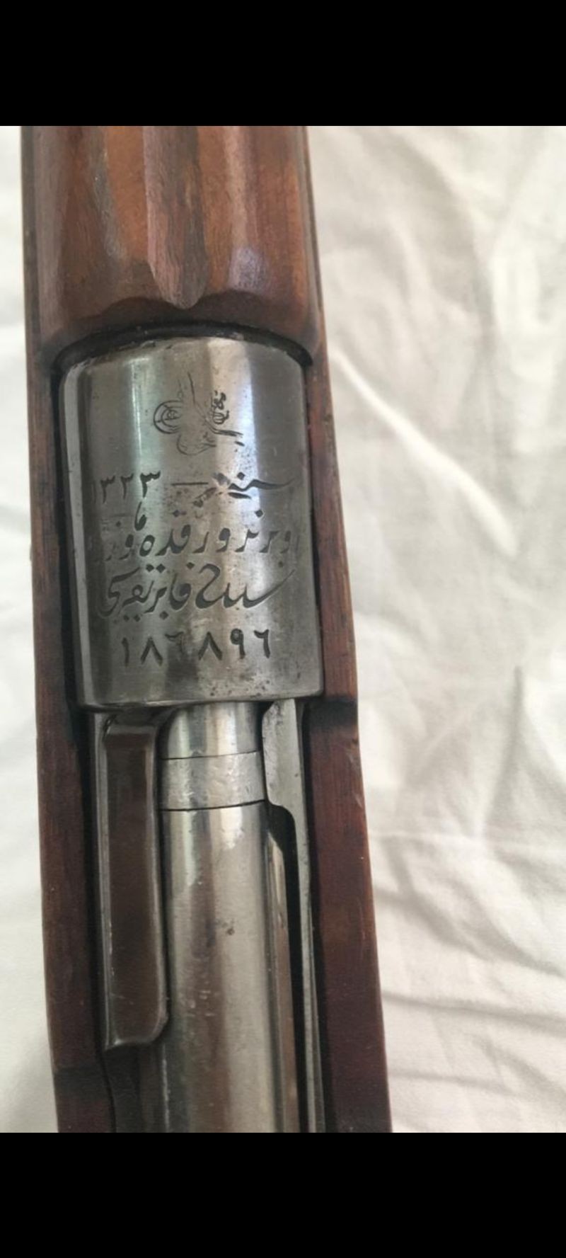 1905 yapımı üstünde Osmanlı Tuğrası olan savaşlarda kullanılmış, osmanlıca nişangahlı Mauser. Almanya'da Obrandorf Silah Fabrikası'nda Osmanlı Devleti için özel olarak yaptırılmıştır. Ruhsatlıdır. 7.65'dir.