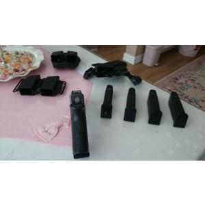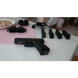 Fabrikasyon emniyet kilidi mekanizmalı ozel uretim (anahtarla kilitlenince kabze dugmesi uyarı verir,fotolarda beyaz cıkıntısı vardir,kilit acılınca kaybolur,silah mekanizmasını kilitler) Ekstra 4 sarjorludur (adet fiyatini arastiriniz) İrca yay ve mil takımı operasyonel modelle (burada detay yazılamıyor,resimden özelliğin ne olduğunu anlayabilirsiniz) Sürgü tutucu operasyonel modelle (normali ince oldugundan parmaga gelmez) Konnektor operasyonel modelle (normali 5 libredir sert tetik cekimi vardır bu parca 3.5 libredir) Nisangah takimi operasyonel Truglo tritium tfo fiberoptik bright sight nisangah takımı ile (fosforla degıl tritium radyoaktif maddesiyle gece gunduz yesıl halde yanar) Sarjor kapaklarından biri ve mekanizma kapagı amerika’da lazer işleme pöh gravürlü modelle Diğeri İsrail’den operasyonel konik cam kırıcılı modelle degistirilmistir. Parcaların orijinalleri de verilecektir. Satin alan kisi ayrica birkac bin liralik en kaliteli kilif ve aksesuarlara da sahip olacaktir. (Kılıflar İsrail fobus,Amerikan blade tech,Avusturya glock Orijinal glock cıft sarjorluk ve tabanca kılıfı (fotolarda yok) Blade tech,all in one yani her kılıfa donusebılır ıc,dıs,techızat kemerı vs. Fobus cıft sarjorluk ve tabanca kılıfı) Kendı alanında benım bıldıgım bu amacla bu aksesuarlarla yapılmıs glock 19 satista yoktur.Satin alan kisi bu bakimdan ozel bir silaha sahip olacaktir. Bu nedenle anlayan ve bilgi sahibi olan kisilerin ulasmasi ricamdir. Ankara ikamet adresidir,dosya ili Van.