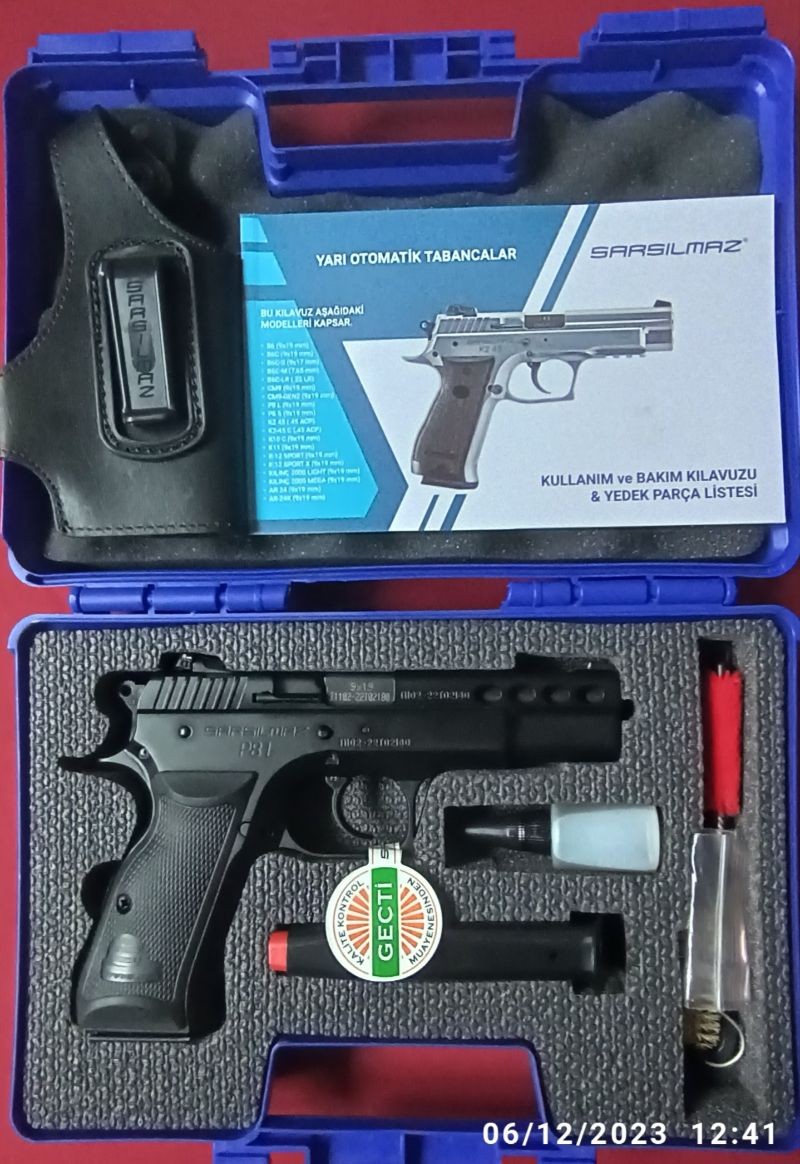 EMEKLİ KAMU GÖREVLİSİNDEN SIFIR KUTUSUNDA HİÇ KULLANILMAYAN 2022 MODEL ÖMÜR BOYU SARSILMAZ FİRMASI GARANTİSİYLE NAMLU SOĞUTMA KANALLARI VE ŞAHLANMAYI ÖNLEYEN 2 ADET KOMPRESÖRÜYLE MAKİNE KİMYA ENDÜSTRİSİ KURUMU FİYATI 24.250.TL. OLAN SİLAH 19.000.TL. SARSILMAZ P 8 L SİYAH.AYRICA (2 ADET 17+1 ŞARJÖR ORJİNAL DERİ TABANCA KILIFI FİŞEK DOLUM APARATI VE DİĞER MALZEMELERİ İLE BERABER.)