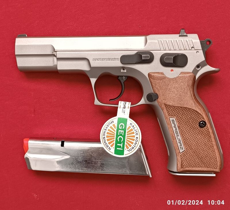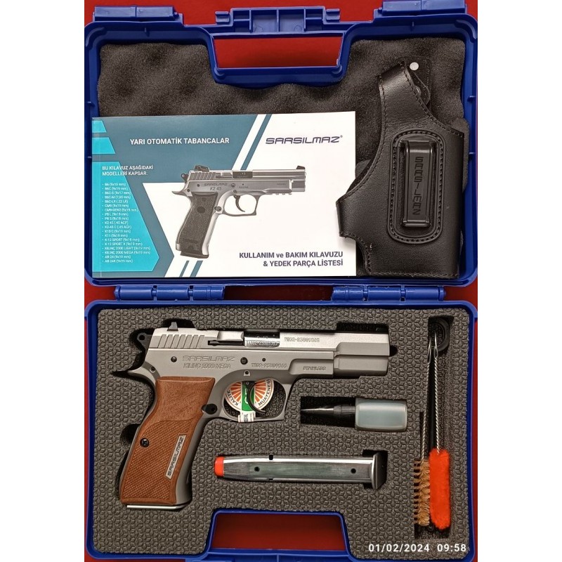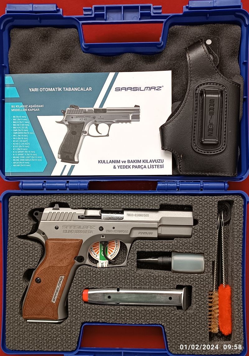 EMEKLİ KAMU GÖREVLİSİNDEN SIFIR KUTUSUNDA HİÇ KULLANILMAYAN ÖMÜR BOYU SARSILMAZ FİRMASI GARANTİSİYLE 2023 MODEL STAİNLESS STELL MAT(PASLANMAZ ÇELİK) SARSILMAZ KILINÇ 2000 MEGA. ( 2 ADET 17+1 ŞARJÖR ORJİNAL DERİ TABANCA KILIFI FİŞEK DOLUM APARATI VE DİĞER MALZEMELERİ İLE BERABER.)