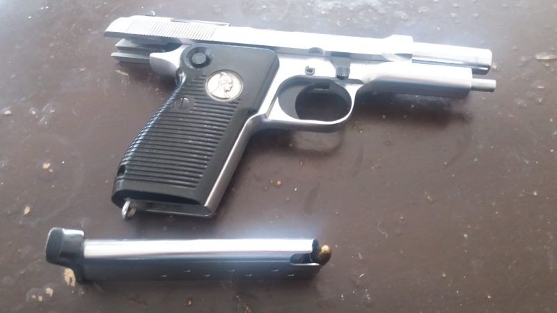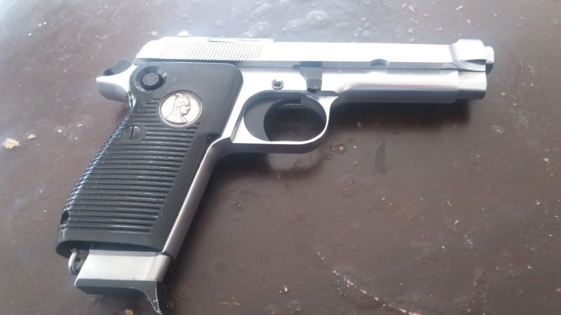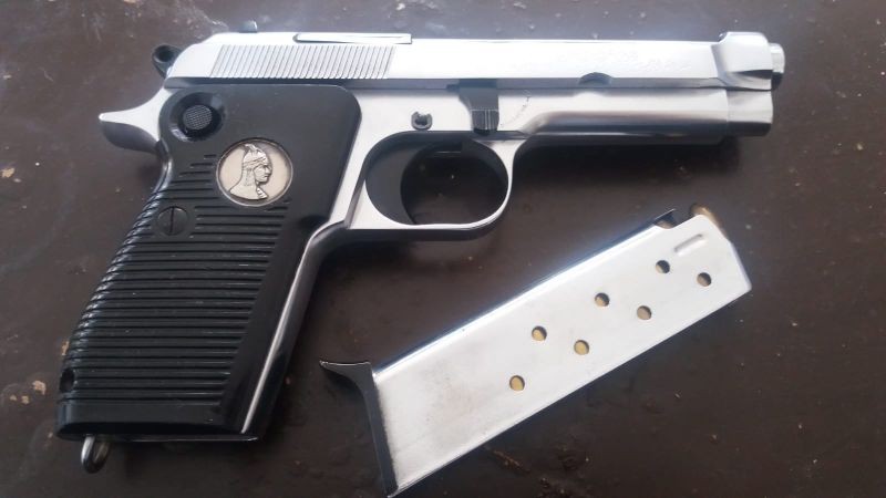 Kaplamalı beyaz 9 mm tabanca