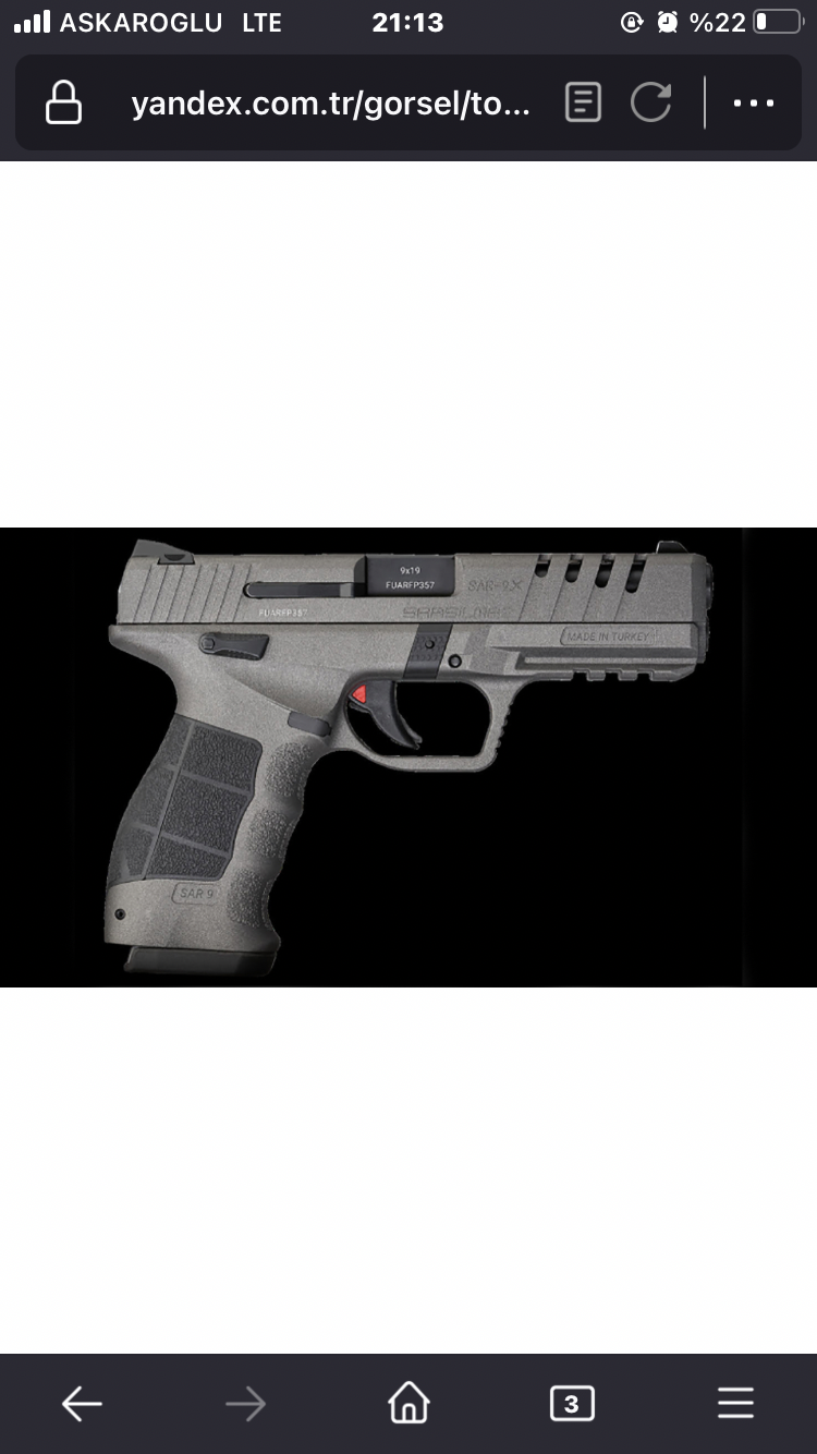 MODEL SAR 9 KALİBRE 9x19 mm ÇALIŞMA MEKANİZMASI Tek Hareketli KAPASİTE 15 NAMLU BOYU 113 mm TOPLAM BOY 193 mm TOPLAM...