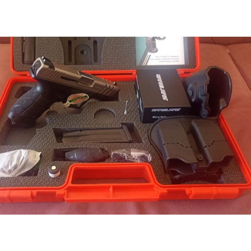 Ruhsatlı. Sıfır. Kutusunda Redrod lazer fener polimer kılıf mevcuttur. - Tetik emniyetli -İğne Kurulu göstergesi -Picatinniy ray sistemi -iğne tutucu çelik arka kapak -15+1 şarjör kapasitelidir -750 Gr ağırlığı vardir