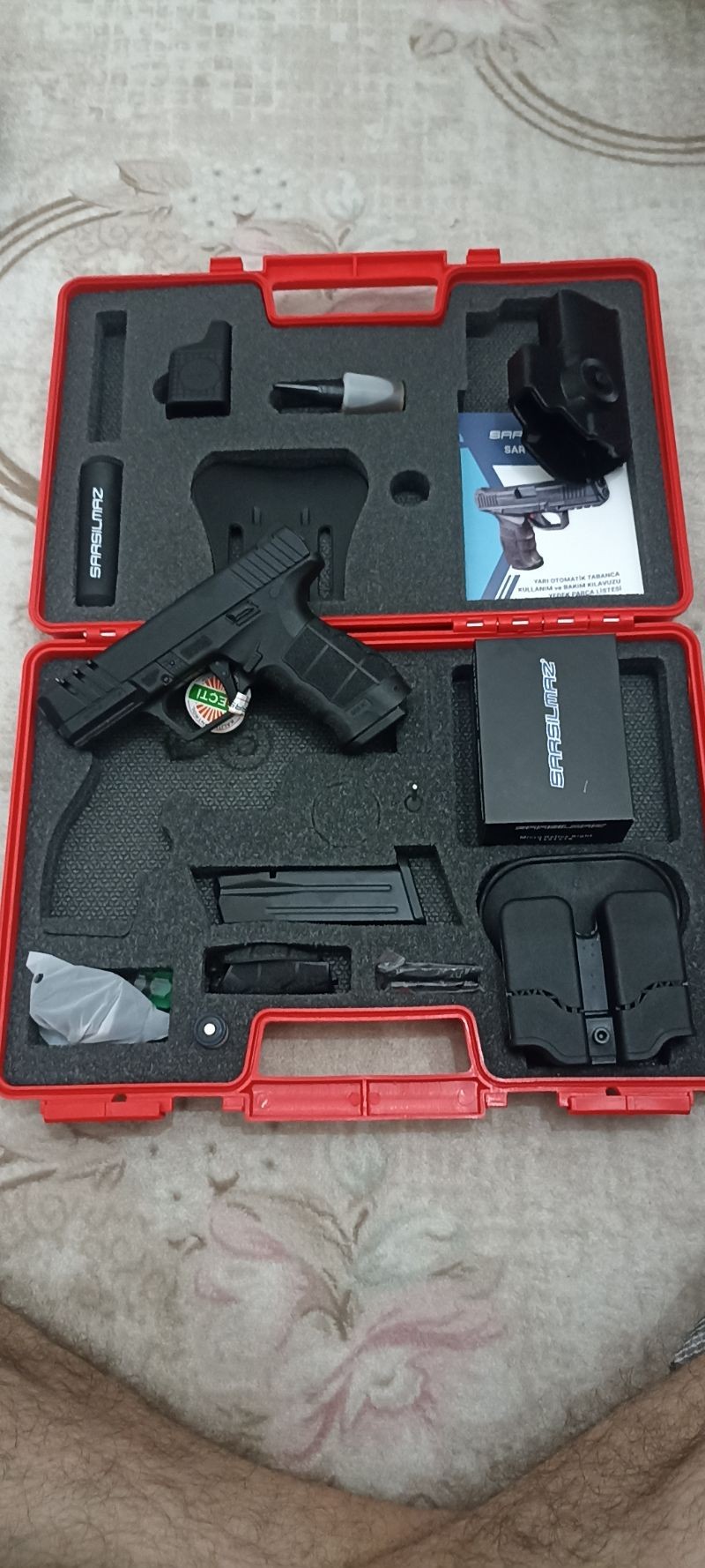 Ruhsatlı. Sıfır. Kutusunda Redrod lazer fener polimer kılıf mevcuttur. - Tetik emniyetli -İğne Kurulu göstergesi -Picatinniy ray sistemi -iğne tutucu çelik arka kapak -15+1 şarjör kapasitelidir -750 Gr ağırlığı vardir