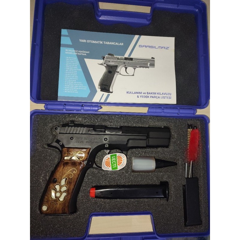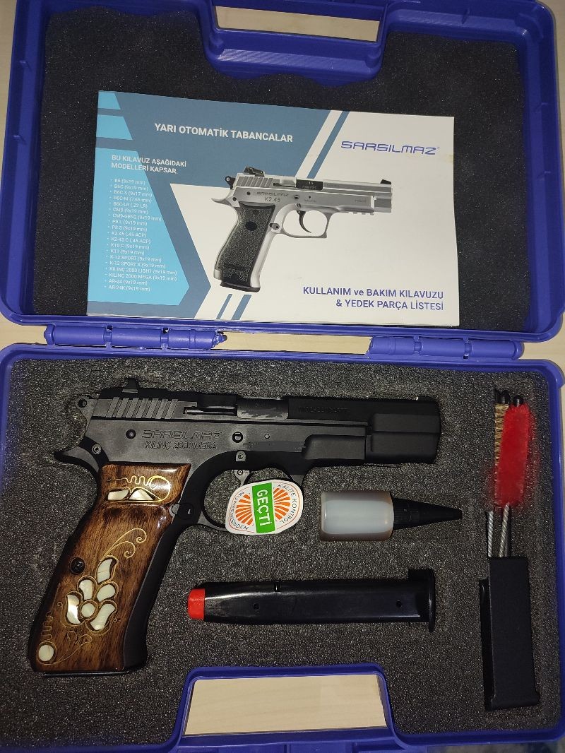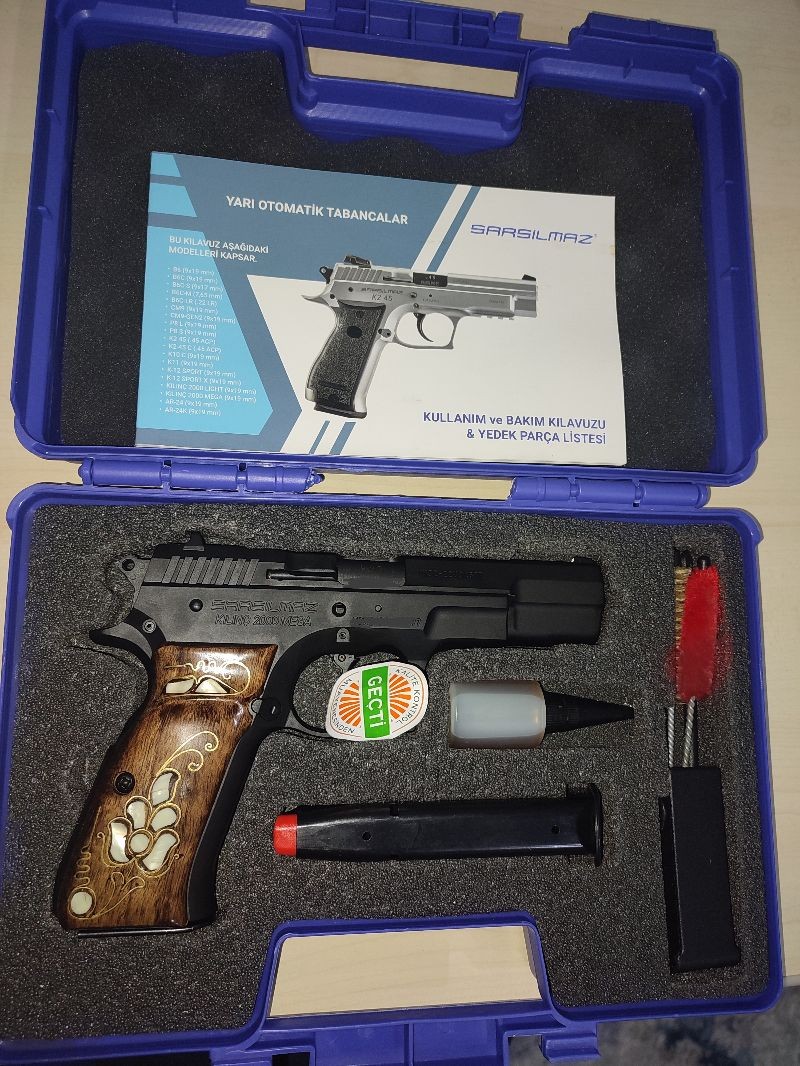 Memurdan 17+1 kılıç mega 2000 siyah , hiç atış yapılmamış sedef işlemeli ceviz kabze takılmıştır .