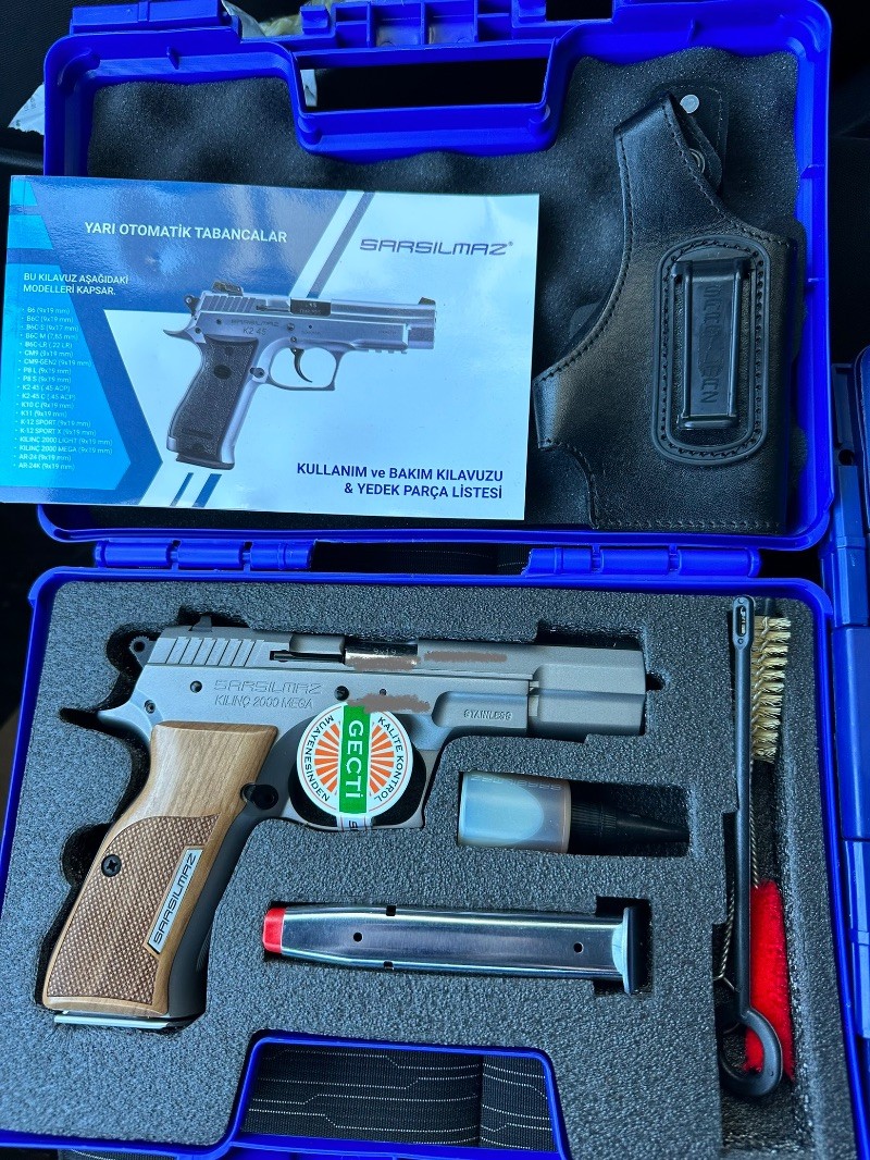 SIFIR KULLANILMAMIŞ MERMİ ATILMAMIŞ KUTUSUNDA DURUYOR. EMNİYET MENSUBUNDAN RUHSATLI SARSILMAZ KILINÇ 2000 MEGA STAİNLESS STEEL 9 mm
