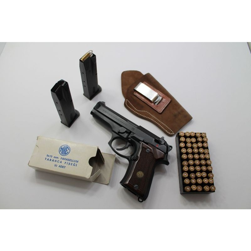 13+1 KAPASİTELİ 9MM 9X19 ÇAPINDA İTALYAN BERETTA. SADECE 2 ŞARJÖR ATEŞ EDİLMİŞTİR. SIFIR AYARINDADIR. TABANCAMIZ ÇİFT ŞARJÖRDÜR. TEMİZLİK MALZEMELERİ VE 2 KUTU MERMİ HEDİYESİ İLE GÖNDERİLECEKTİR.