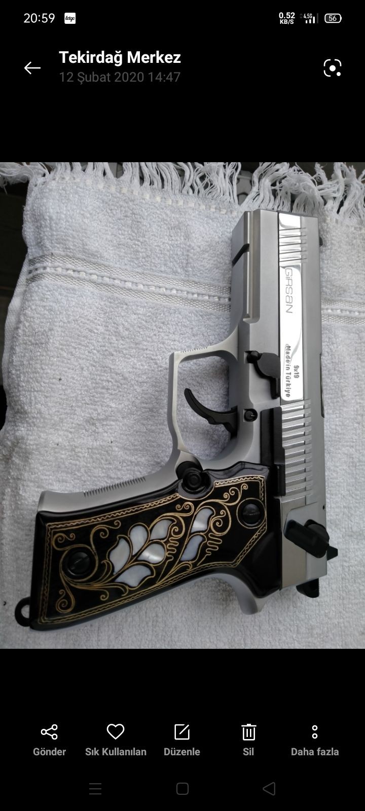 Silahla sadece 65 adet mermi atilmistir.Kutusu faturasi mevcuttur yaninda sedef kabze hediye edilecektir. kesinlikle cizik vs yoktur.Farkli model alacagimdan satiyorum.