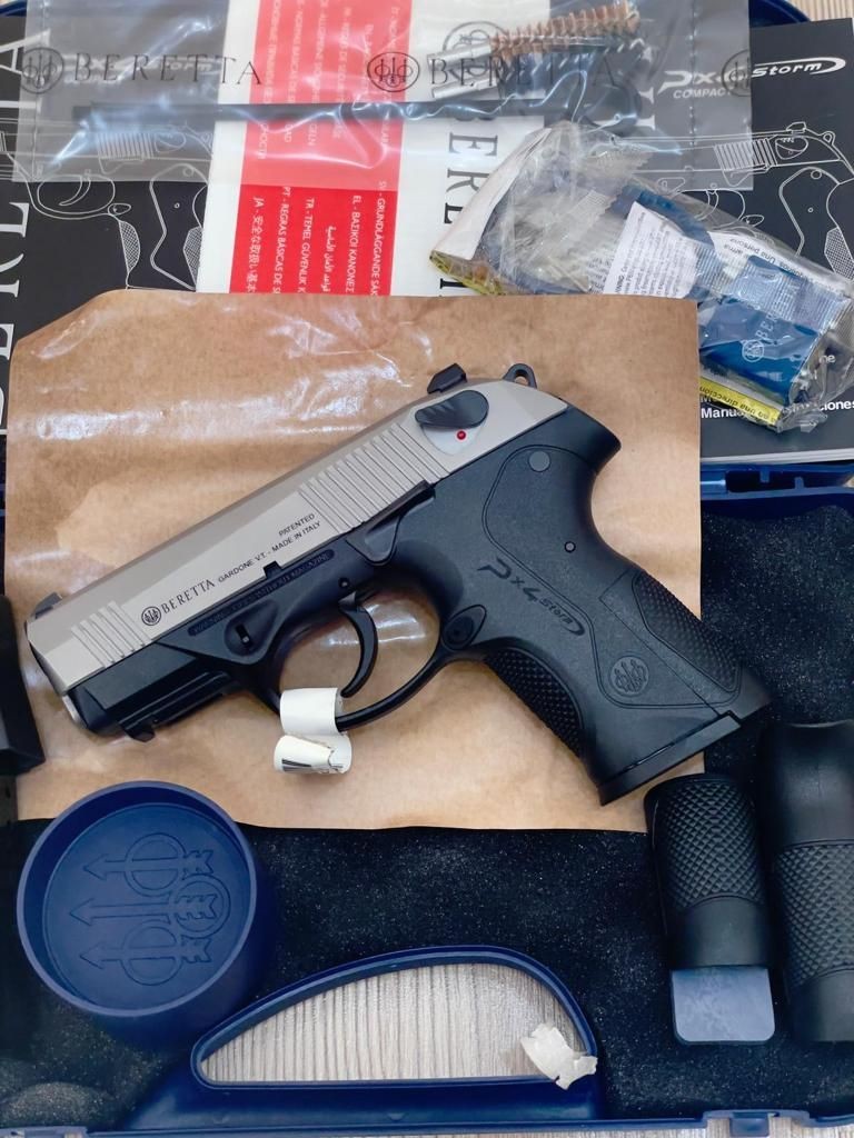 SIFIR.2022 MODEL.KUTU İÇİ EKSİKSİZ.BERETTA PX4 STORM COMPACT İNOKS MODELİ.15+1 ŞARJÖR KAPASİTELİ.DÖNER NAMLU SİSTEMİ VE ÇİFT EMNİYET SİSTEMİ, HOROZLU, VE PASLANMAZ ÇELİK SÜRGÜ YAPISI.DENEME ATIŞI DAHİ YAPILMAMIŞTIR.RUHSAT İŞLEMLERİNİ TAMAMLAMIŞ SİLAH SATIN ALMA YETKİ BELGESİ HAZIR KİŞİLER ARAYABİLİRLER.