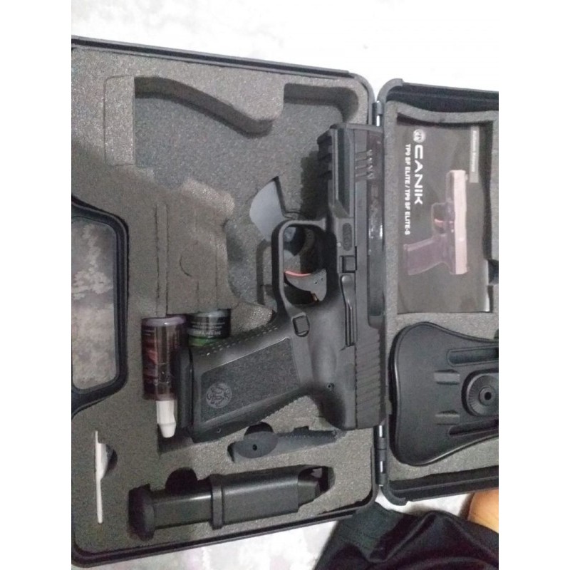 Kamu görevlisinden sıfır Canik Tp9 Sf Elite S.Sadece Deneme atışı yapılmıştır.Yaglanarak kutusunda muhafaza edilmiştir.Modelinin en dolu özellikleri olan S modelidir.kilifi tüm aparatları mevcut olup sadece ruhsat sahibi ya da ruhsat alabilecek konumdaki alıcılar değerlendirilecektir.