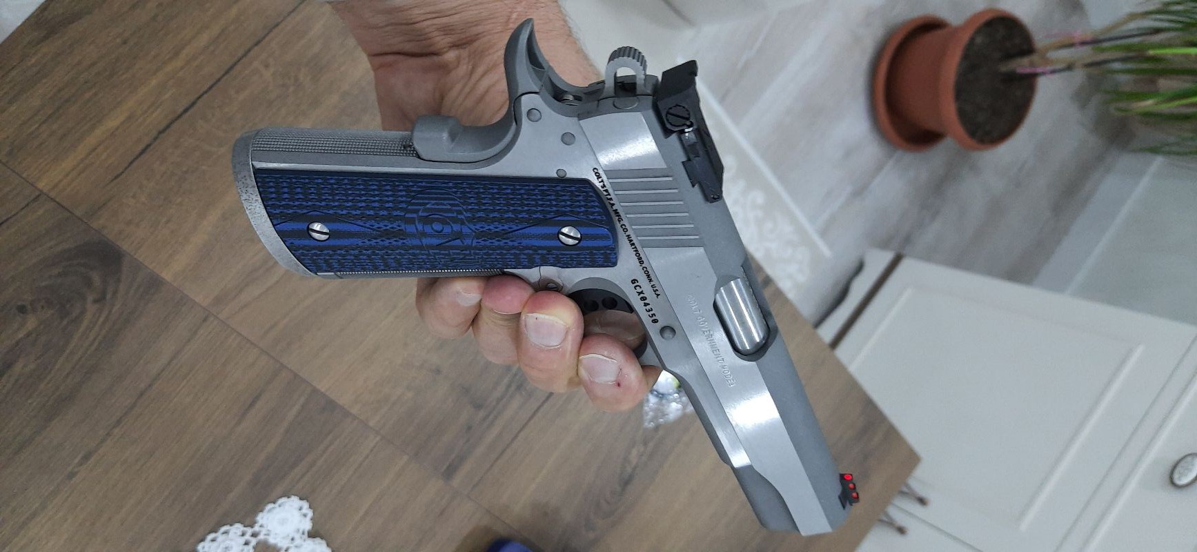 45 calıbre 8+1 şarjör kapasiteli 48/50 çelik yani en iyi çelik kullanılmış orijinal bir silahtır. Kutusunda sıfır duruyor. Hiç kullanılmadı.2 adet yedek şarjör mevcuttur. Fiyat $ olarak yazıldı ama duruma göre TL. Olarakta satılabilir. (Makul bir pazarlık olur.)