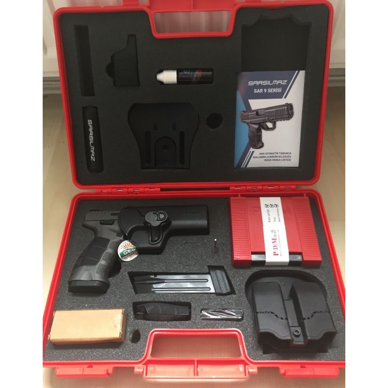 İKİ YIL GARANTİLİ SIFIR KUTUSUNDA HİÇ KULLANILMAMIŞ SARSILMAZ SAR 9X PLATİNUM.RED DOT,FENER,İKİ ADET 17+1 ŞARJÖR,FİŞEK DOLUM APARATI,ORJİNAL KILIFI VE DİĞER MALZEMELERİ İLE BERABER.