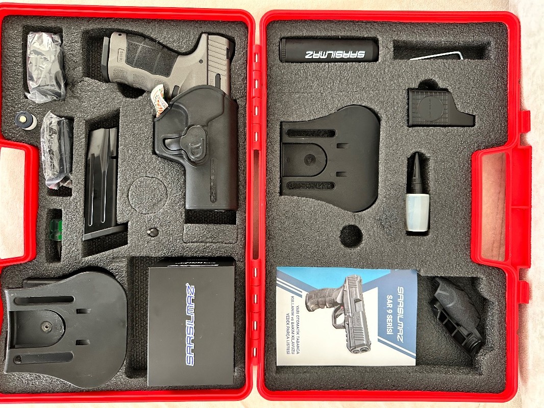 0 546-454-3476 Ürün taşıma ruhsatlı ve sıfır olup kutusundan çıkartılmamıştır.Deneme atışı dahi yapılmamıştır.MKE’den alındığı şekilde muhafaza edilmektedir.İhtiyaç dolayısıyla satılıktır.Kutu içeriği eksiksizdir. İki adet 15'lik şarjör Mermi basma aparatı Yedek gövde yan ve sırtlıkları(L/S) İki kapasiteli şarjör kılıfı Taktik kilitli kılıf Kalem harbi seti Pim zımbası Tabanca feneri Reddot NOT:Ürünün MKE satış fiyatı 27.500 TL’dir.