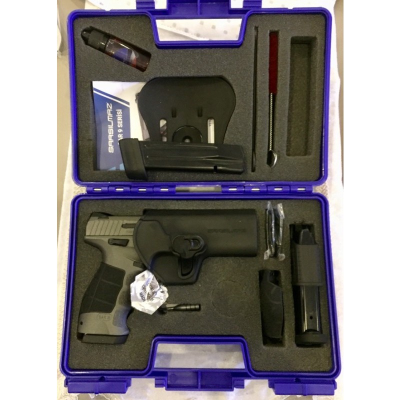 Silah sarsılmazın yeni modeli sar9 mete platinium 17+1 9mm sıfır tabancadır.iki adet 17+1 bir adet 19+1 olmak üzre üç adet şarjörü vardır.kutusuyla tüm aksesuarları ile verilecektir.silah sıfırdır hiç mermi atılmamıştır.ruhsat çıkarma hakkı olan satın alabilir.RUHSATSIZ SİLAH SATMIYORUM