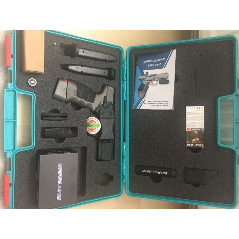 EMEKLİ KAMU GÖREVLİSİNDEN SARSILMAZ FİRMASI GARANTİSİYLE SIFIR KUTUSUNDA,HİÇ KULLANILMAYAN SARSILMAZ SAR 9 GEN 2 PLATİNYUM.(RED DOT LAZER NİŞANGAH,FENER,DİPÇİK,İKİ ADET 17+1 - BİR ADET 19+1 TOPLAM ÜÇ ŞARJÖR,ORJİNAL POLİMER TABANCA KILIFI,FİŞEK DOLDURMA APARATI VE DİĞER MALZEMELERİ İLE BERABER.)