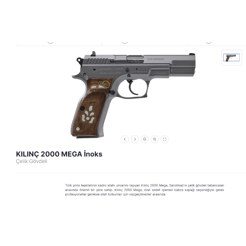 Memurdan Sıfır Kılınç 2000 Mega inox , Alındığı gibidir, deneme atışı dahi yapılmamıştır. Silah Mardin'dedir. mesaj atarsanız dönüş yapılır.Ciddi ve ruhsatı hazır arkadaşlar iletişime geçebilir. Acelem yok. 1. Sarsılmaz Kılınç 2000 Mega İnoks. Sarsılmazın Çelik Gövdeli en iyi silahı. MKE' de bile nadir bulunan serisi, herkesin araştırıp almaya karar verdiği model 2.Ruhsat devri hazır. Taşıma yada bulundurma ruhsatı olarak devir yapılabiliyor. 3. 9*19 mm, 4. 17+1 mermi kapasiteli 5.)İki adet 17 lik şarjör 6. Sıfır, 7. Kullanılmamış, 8. Atış yapılmamış, 9. Fabrikasyon etiketi üzerinde, 10. Fabrika orjinal çıkış renkli, sonradan boyama olmayan