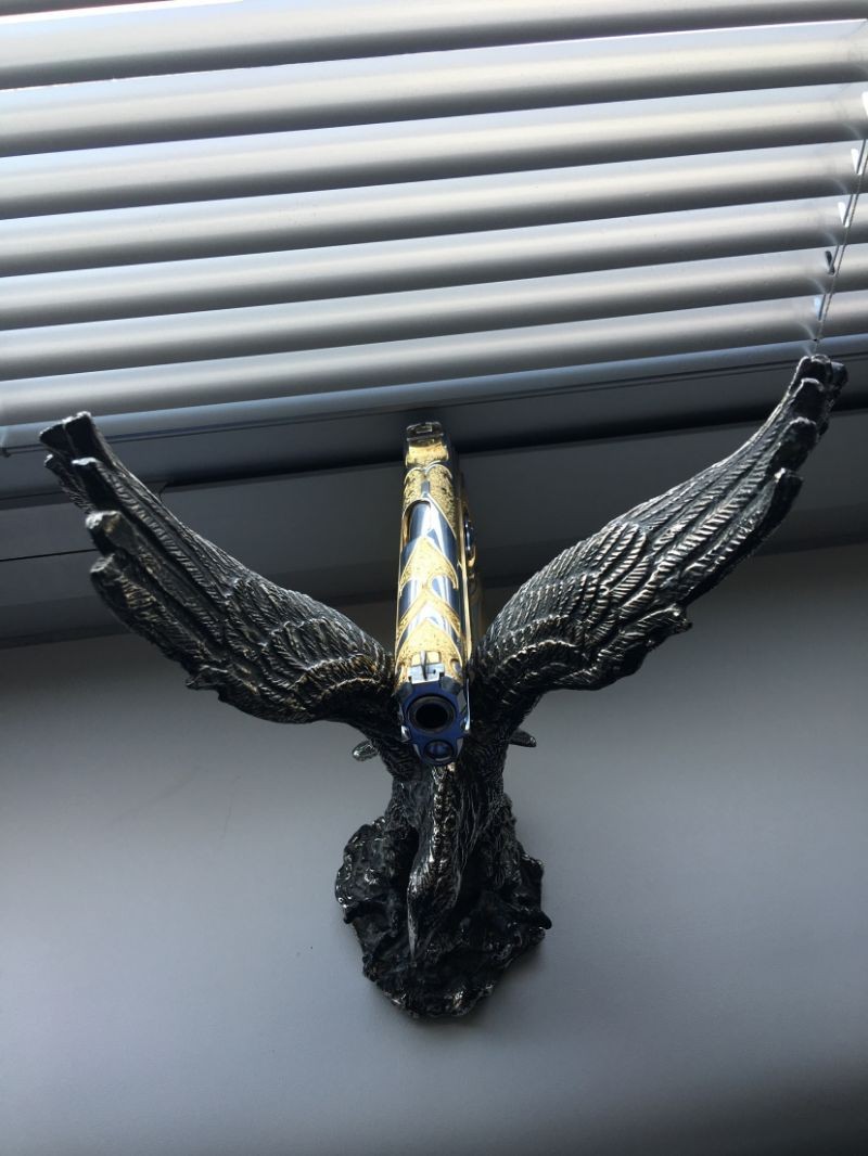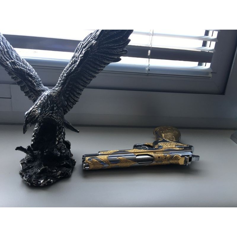 çok nadir bulunan sig p210 titanyom üzerine altın işlemeli orjinal bir tabancadır