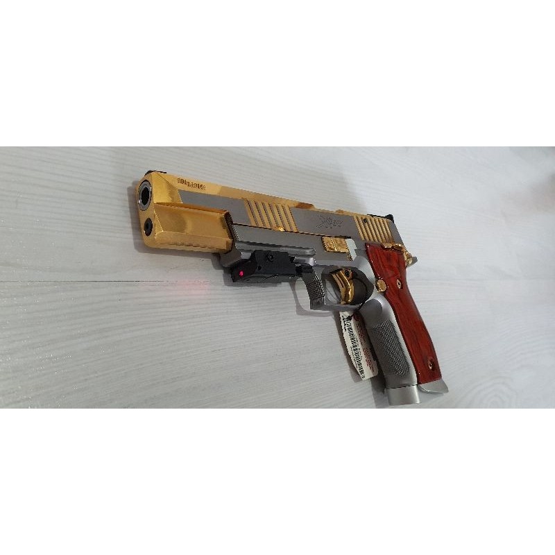 Fabrika çıkışı 24 AYAR altın kaplama. Nadir bulunan, oldukça gösterişli, ihtişamlı bir silah. Picatinny ray ile istediğiniz aksesuarları takabilirsiniz. Görüntüler temsili değil silahın kendi fotoğrafıdır. Ben hiç atış yapmadım fabrikadan geldiği haliyle 19 luk iki adet şarjör, 200 adet ithal fişek ve ince yapılı lazer pointer ile birlikte verilecektir.