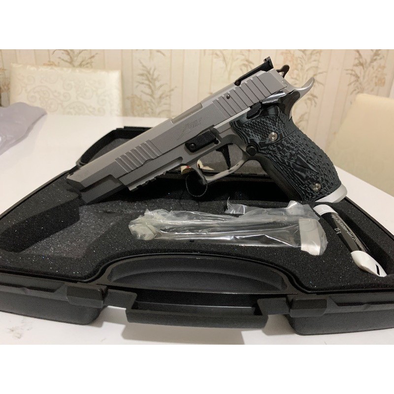 Diplomatik izin ile avrupadan ithal edilmiştir. Almanya üretimli olanlarındandır, sig sauer X modelllerinin en yenisidir, extra aparat takılabilir , ayarlanabilir nişan tertibatına sahip,orjinal kutusuyla birlikte 19+1 kapasiteli 2 adet şarjörü vardır,hiç atış yapılmamıştır, Türkiyede nadir bulunan modellerdendir