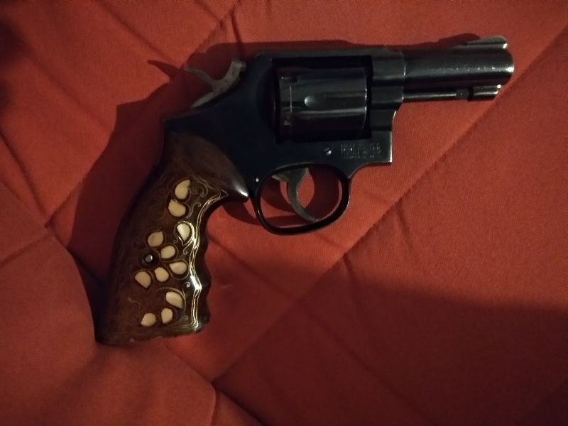 Memurdan Çok temiz TC.Polis yazan Smith & Wesson tabanca Yanında orjinal kabze ve bir adet sedef işlemeli kabze,1 kutu ( 50 adet ) mermi birlikte verilecektir.