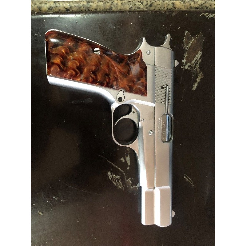 Temizinden 14’lü Browning. Sürgü, şarjör ve horoz emniyeti. Ahşap kabza. Tek şarjör. 245PM serisi.