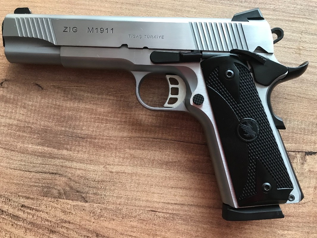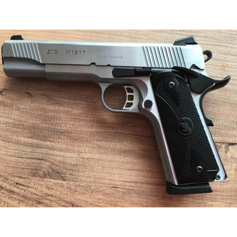 Tisaş-Zigana m1911 model silahım... 45 acp (kalibre) fişek atar Sadece bir şarjör (8 adet) deneme amaçlı atış yaptım.. silahımda nokta çizik hata benzeri hiçbir sorun kesinlikle yoktur. Kutusundan hiç çıkmadı taşınmadı.. Sıfırından hiçbir farkı yoktur.. Kutu içeriği tam ve hiçbiri kullanılmamıştır. Yeterli mühimmatı mevcut olup istenmesi halinde fiyata eklenir İhtiyaçtan satılıktır cüzi pazarlık payı vardır