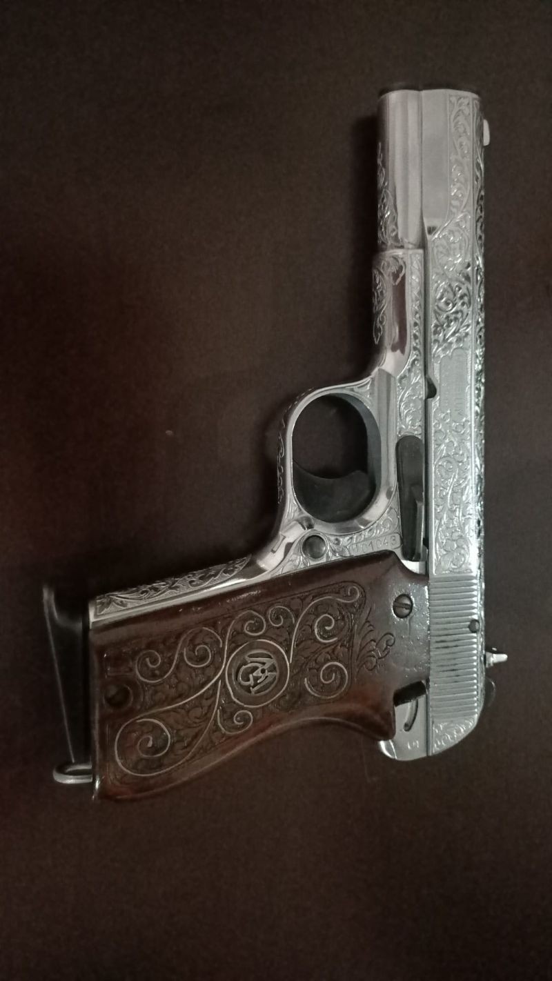 Ürün temiz ve bakımlıdır.9 mm parabellum olup 1943 yapımıdır.Atışta hiçbir sıkıntısı yoktur.Gravürlü gümüş kaplamadır.Lütfen mesai saatleri içerisinde arayınız. Silah taşıma ruhsatlıdır ve satın alma usulleri bellidir. Bunun harici tekliflere cevap verilmeyecektir.