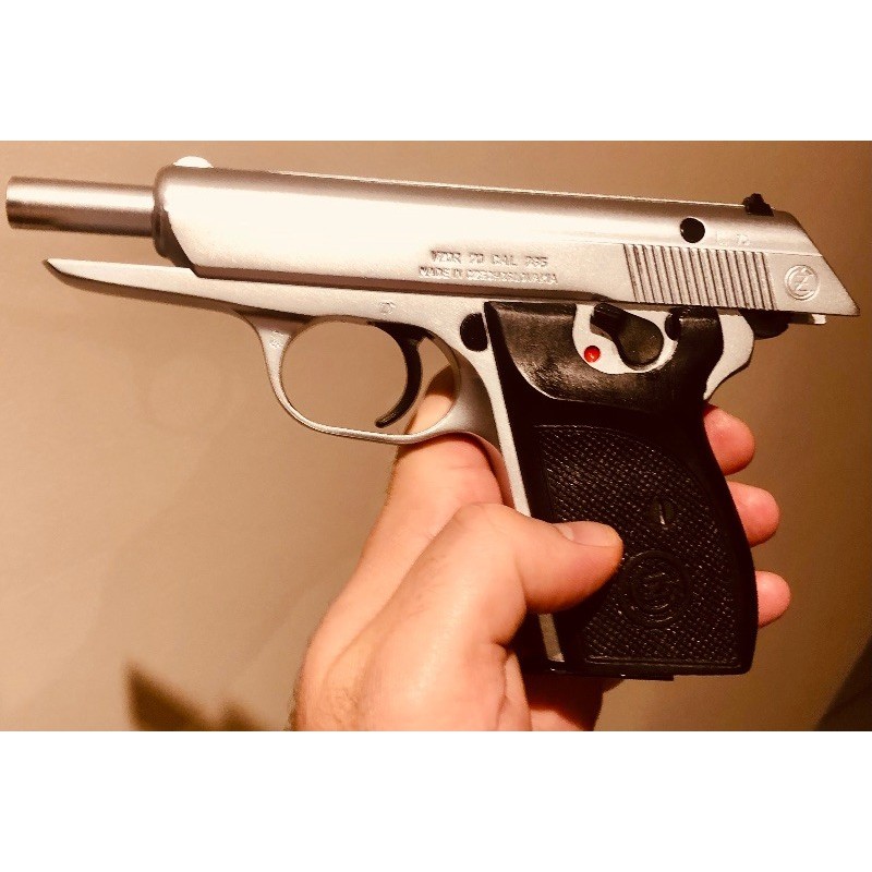 Canik tp9 SFx ile takas olur. CZ 70 olup 7.65 mmp 1975 modeldir, rahmetli asker emeklisi babamizin beylik silahidir. Tasima ruhsatlidir. Silahla poligon disinda isimiz olmadigindan meraklisina satmak isteriz. Yasindan dolayi orjinal siyah boyasi bozuldugundan Bursa silahci ali ustada komple mat krom yapildi. Kurcalanmamis, yorulmamis bir silahtir. 7+1 orjinal sekilde kullanilmaya hazirdir. Orjinal sarjoru, tasima cantasi, harbi seti, sifir siyah boyali agac kabze takildi, orjinal plastik kabzesi de durmaktadir. Resmi silah olup Ruhsat alamayacak kisilerin aramamasi onemle rica olunur.