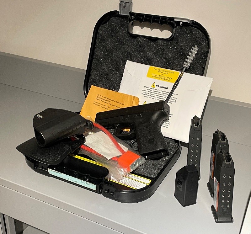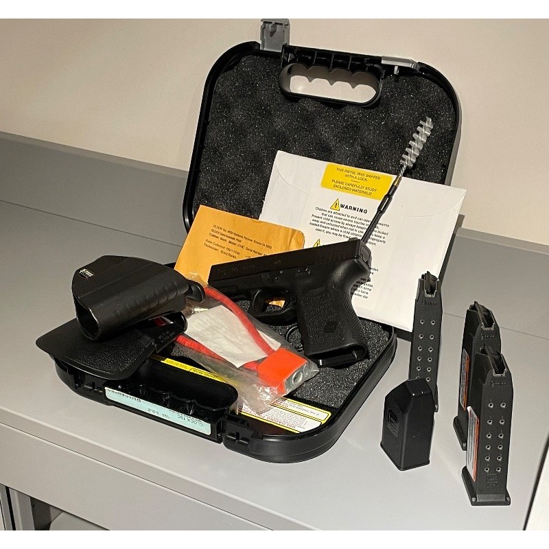 Kamu personelinden 2008 Glock 19C Gen3. Fosforlu, karanlıkta namlu parlamasında bile nişan almayı sağlayan ABD Deniz Piyadelerinin kullandığı Trijicon marka nişangahları vardır. Hiç ateş edilmemiştir. ABD’de yapılan kayıt/deneme atışlarının 2 kovanı zarfında durmaktadır. Kutuludur. 3 şarjör, 1 şarjör doldurma aparatı, özel fırçası, özel kilidi, baş parmakla mandalına basılarak tek elle silah çekmeye imkan tanıyan, arabaya binildiğinde ekseni ayarlanabilir Fobus Holster silah kılıfı ve 200 adet mermi ile birlikte teslim edilecektir.