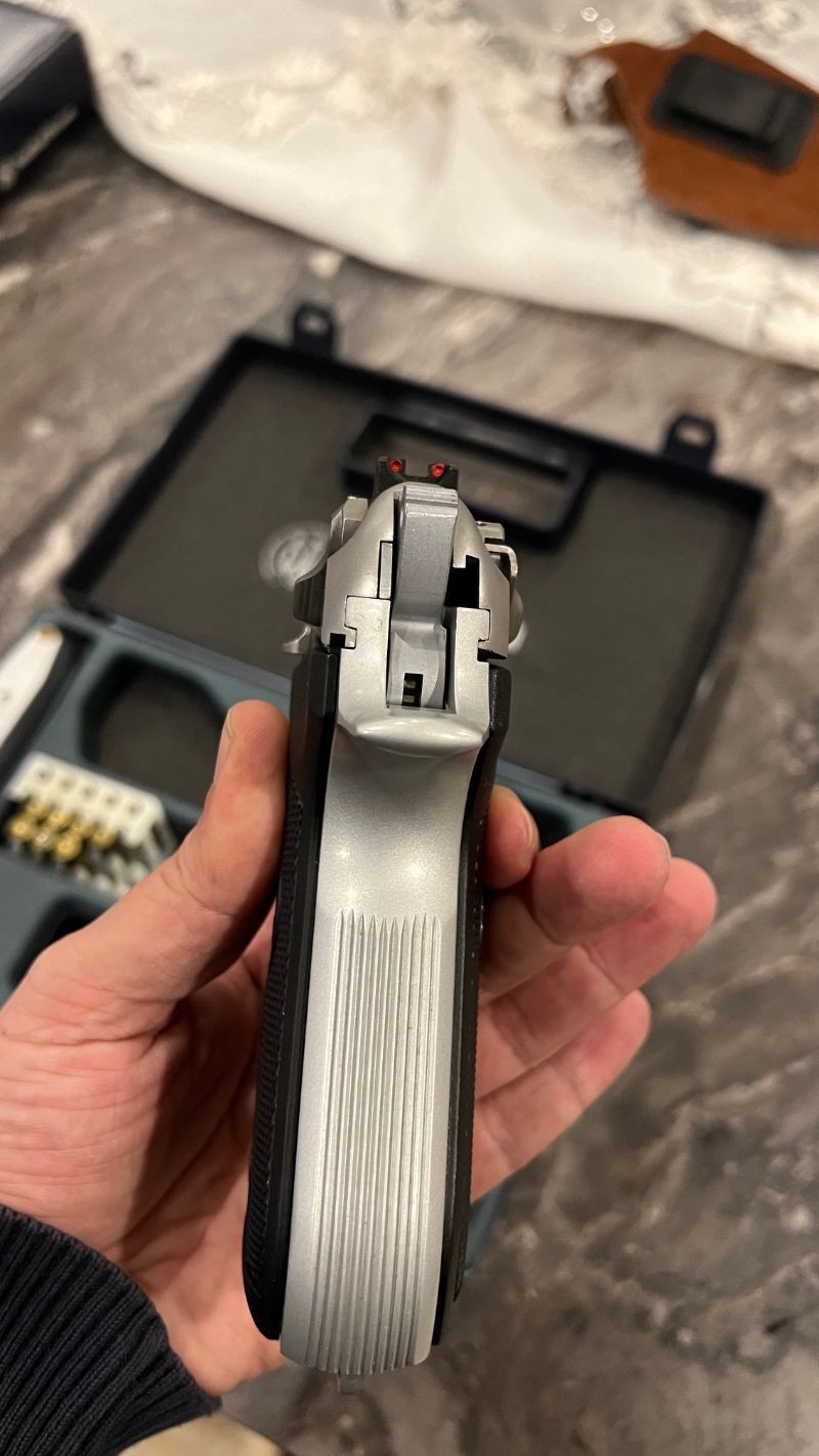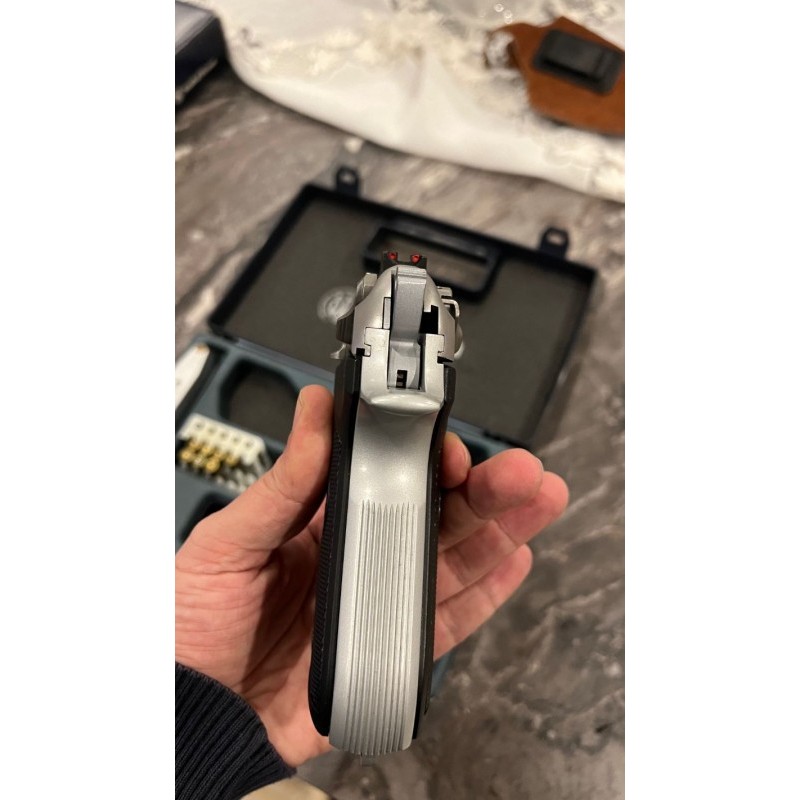 Resimlerde gözüktüğü gibi son derece temiz durumdadır. Bulundurma ruhsatı vardır. Fabrikasyon stainless paslanmaz çelik inox modelidir. Resimlerde ki iki taşıma kılıfı da ücretsiz verilecektir. Yedek şarjör vardır. Sadece silah ruhsatı olan ve noter satışına hazır durumda ki kişiler iletişime geçsin lütfen.